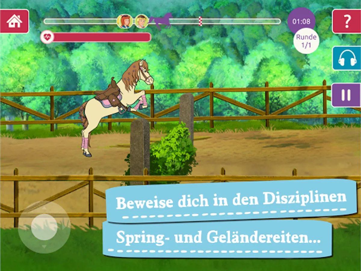 There's a lot going on at Martinshof: the big horse show is coming up! Together with the young witch Bibi Blocksberg and her horse friend Tina you can race and compete with your horses in three different disciplines for the winner's cup. While playing on the equestrian farm, you can also listen to the exciting original Bibi & Tina audio book “The Hungarian Riders”. Sounds great, doesn't it?