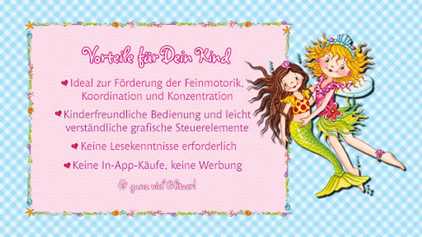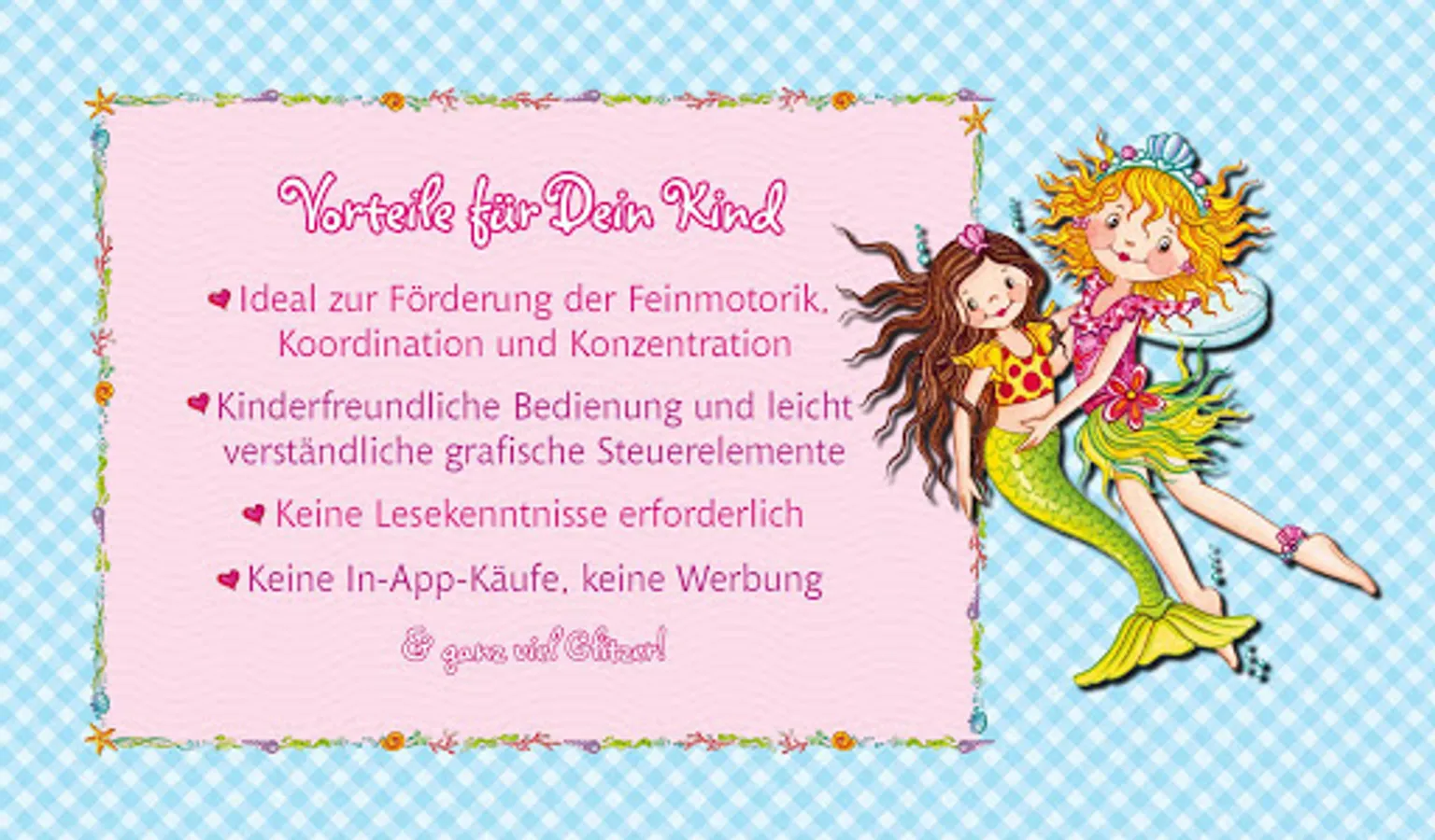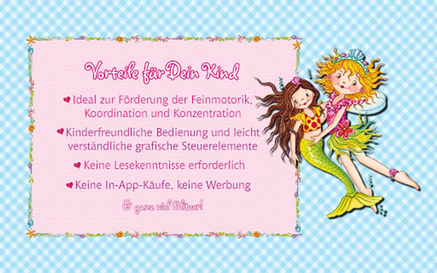 Playful train the fine motor skills intuitive but specifically painting and Pointing at the "coloring fun" over the screen thereby released conjure glittering motifs with dolphins and mermaids - that's exciting and trains at the same concentration and fine motor skills. So it is not boring the little increases the level of difficulty. It can be played, depending on your mood relaxed or against time.
