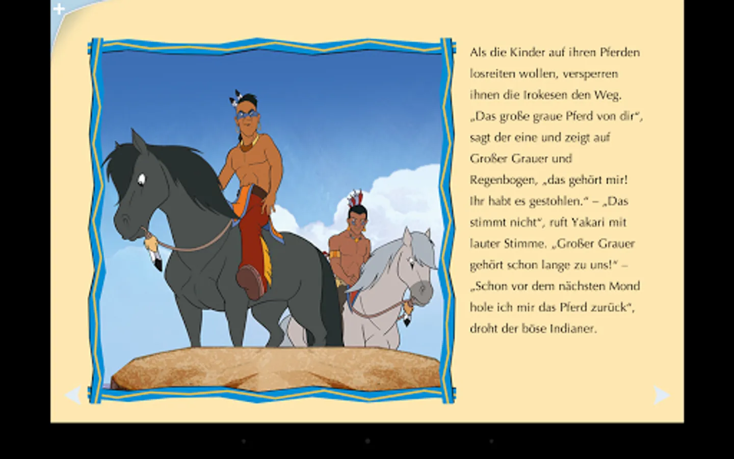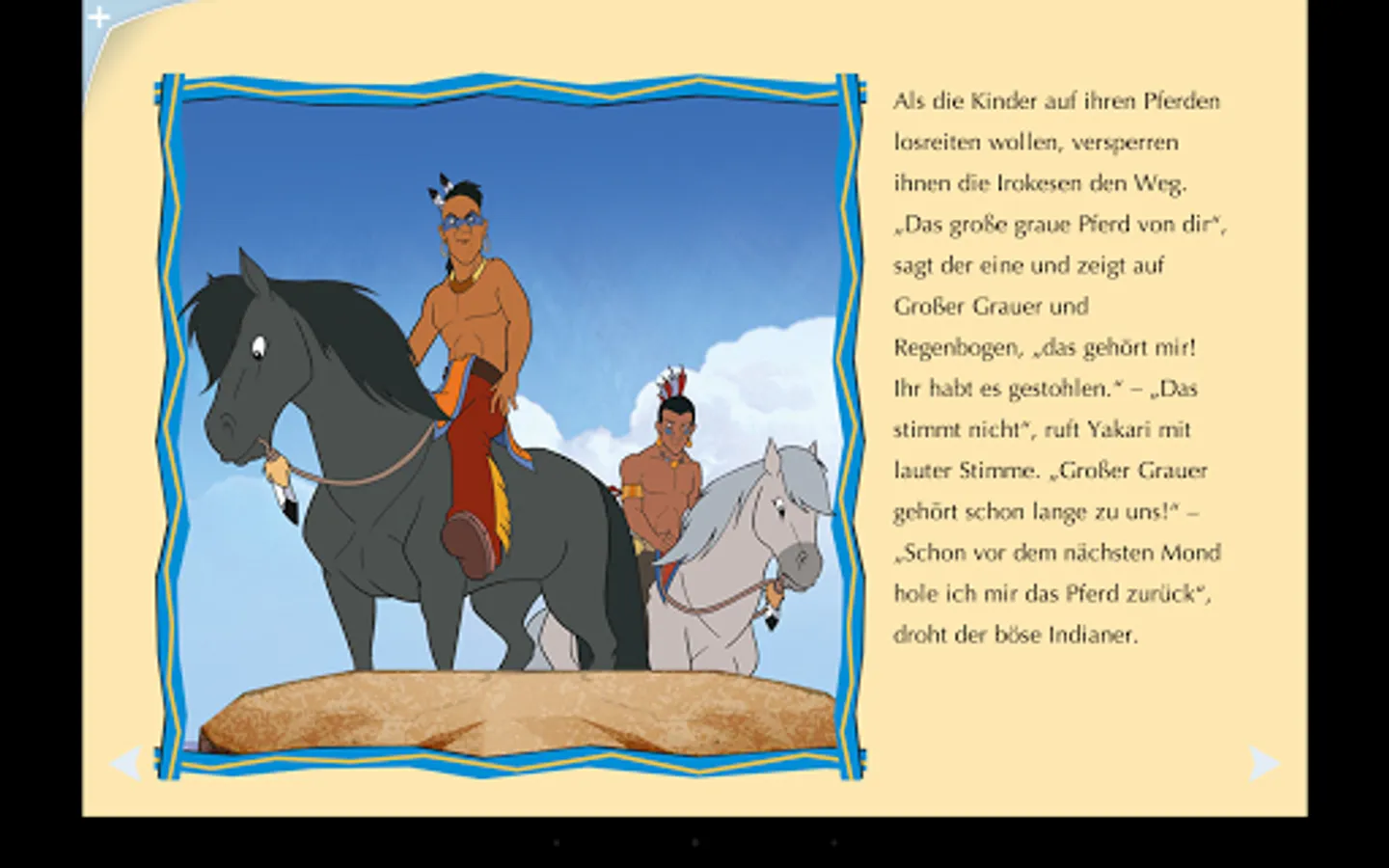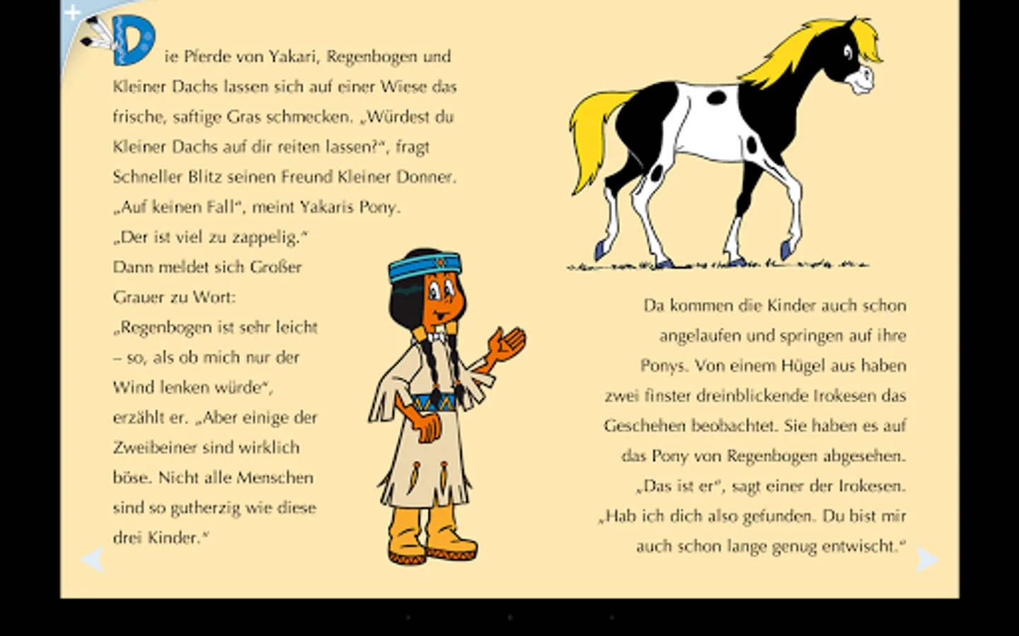 Yakari, Little Badger and rainbow, with their ponies on the road, when suddenly two Iroquois and claim Big Grey, the Pony of Rainbow, the Indian girl is theirs. This of course is not true. It was Yakari's horse Little Thunder, who brought the injured to the Sioux Pony some time ago. There, Great Gray was nursed back to health and has remained with the tribe. But the two Iroquois are determined to bring Big Grey se. For Yakari and his friends a dangerous situation, because they are too far away from their tribe in order to ride home quickly can. The friends have to camp out there. As Yakari and Little Badger wake up the next morning, Big Gray is gone. If the two Iroquois reached their destination?