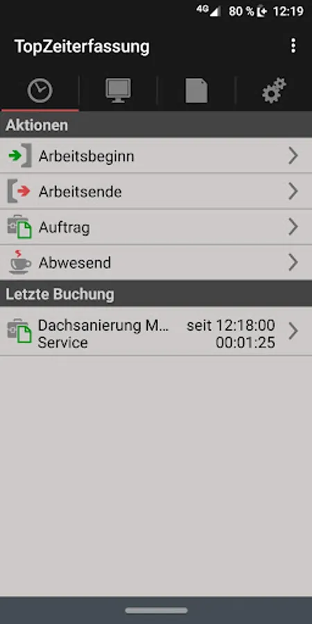 - Registration of absence times such. B. smoking break, business trip, etc.