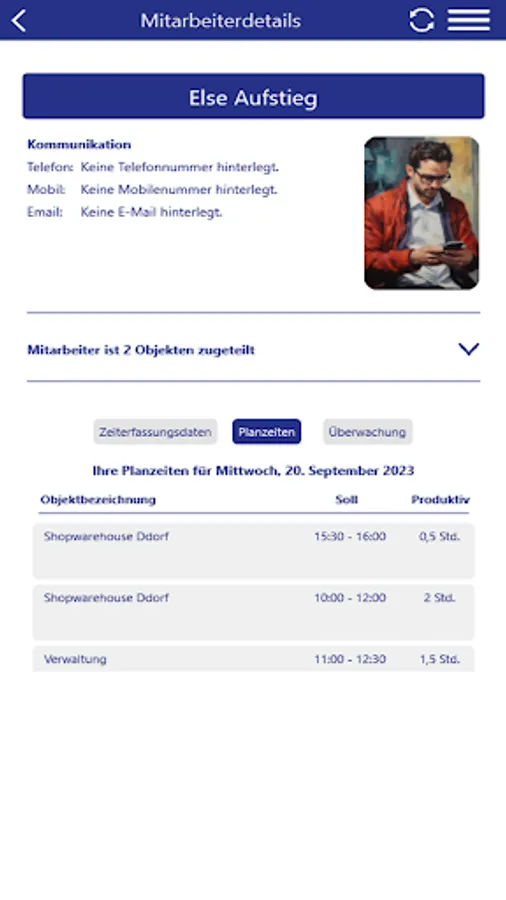 It is also possible to display an overview of your employees and objects.