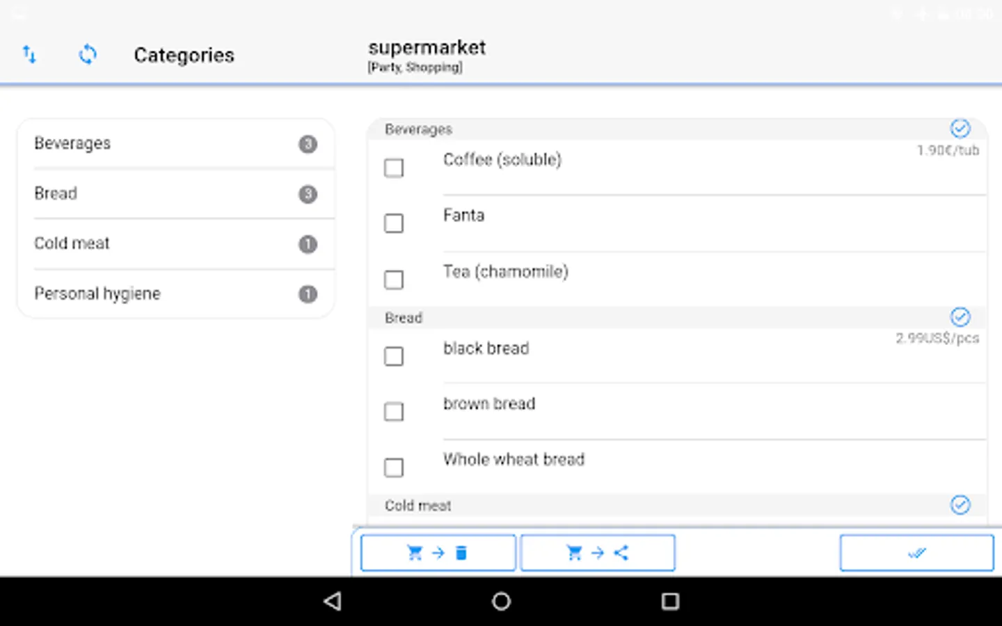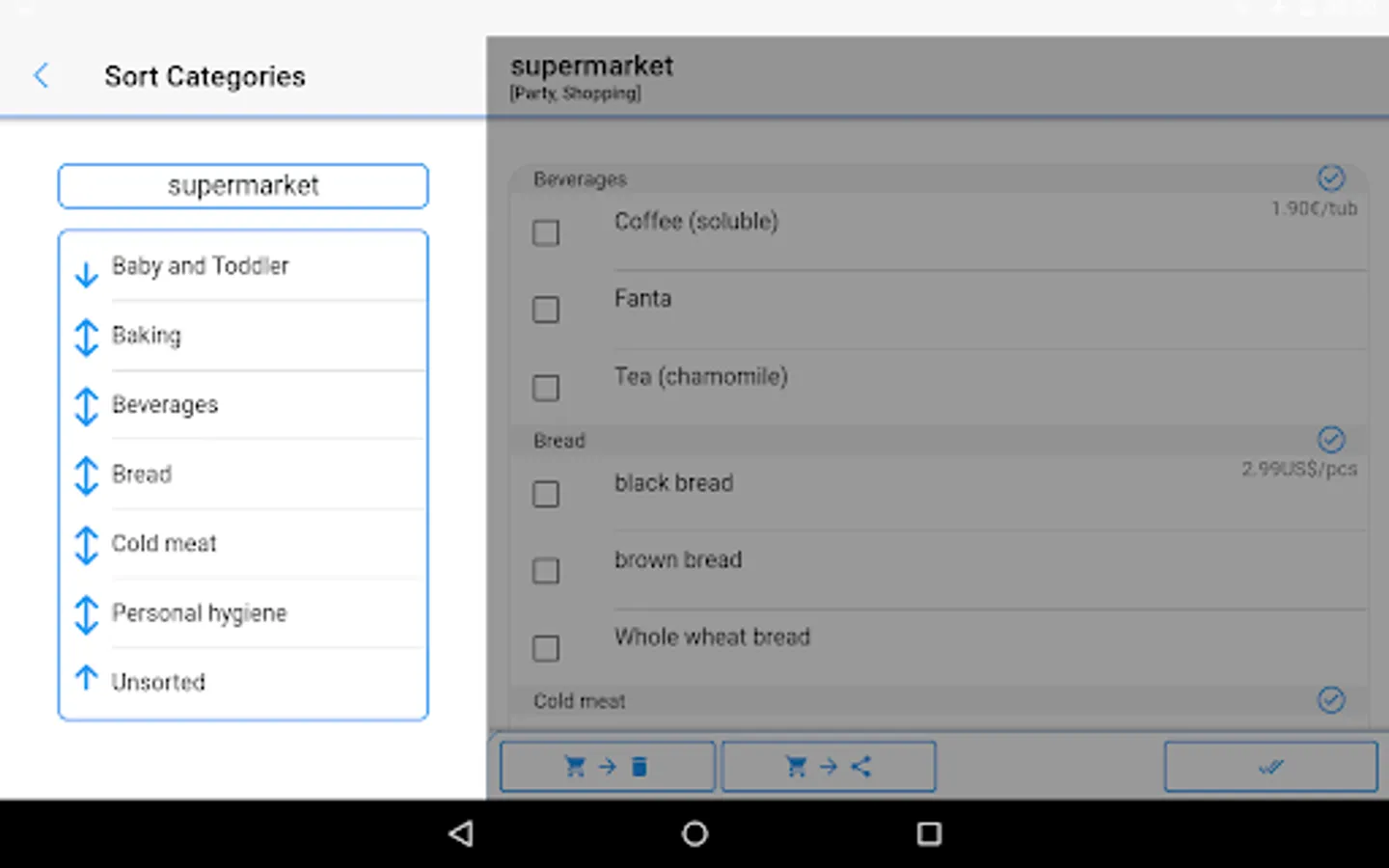 Tired of managing your different shopping list? Save your time and use this intuitive shopping list: