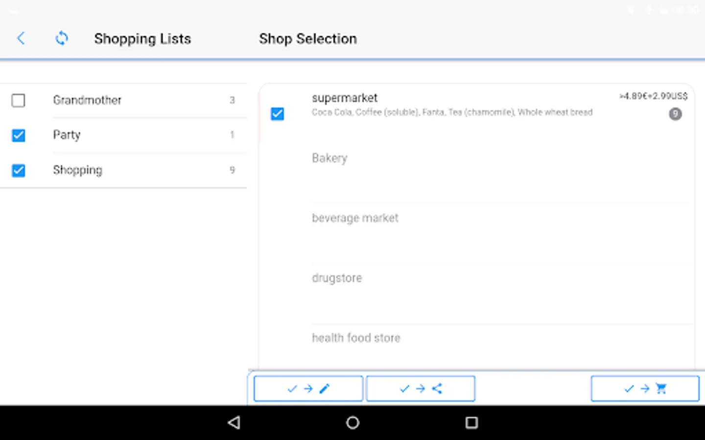 - Shopping list can be forwarded via SMS, email, Whatsapp, joyn, etc