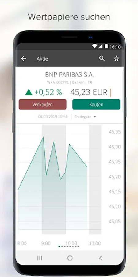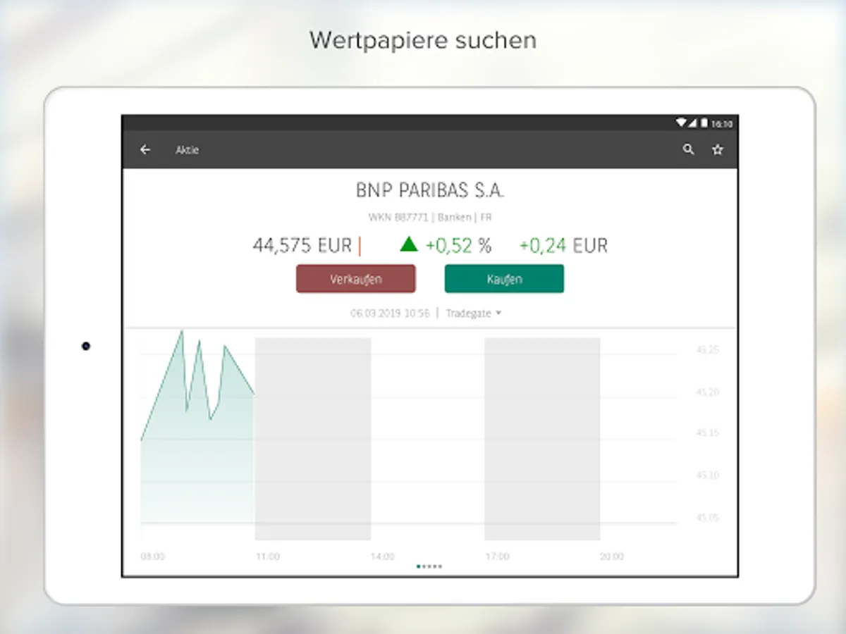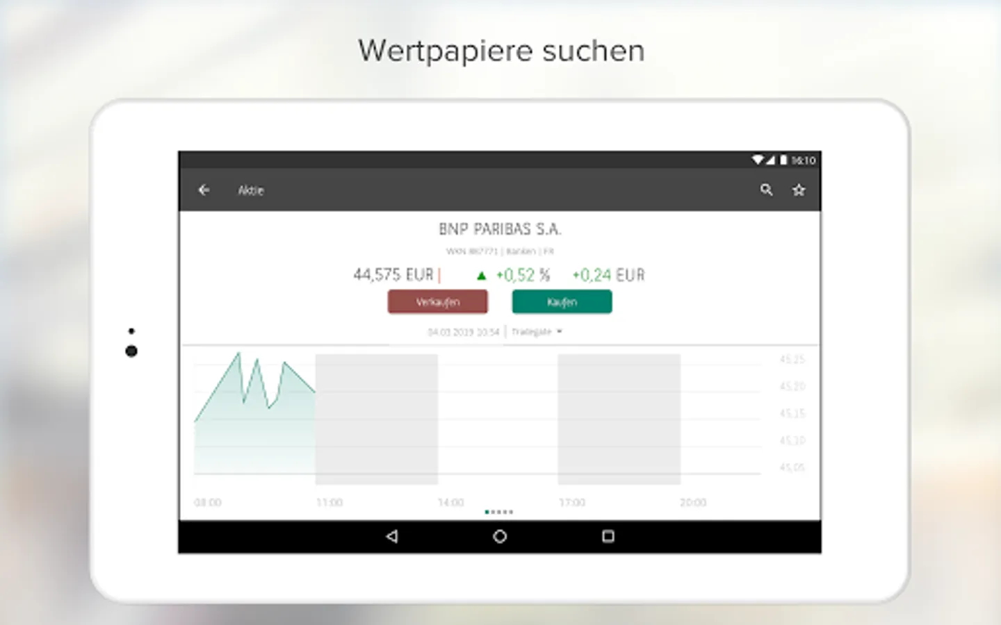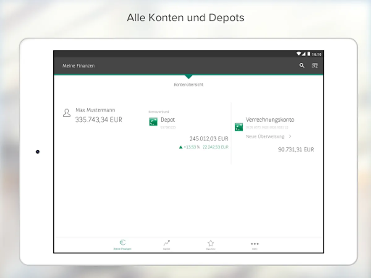 In the Depots area you can see the development of your depot values. With the help of various display options you can configure the display according to your requirements. Of course, securities can also be bought or sold with just a few clicks. With your individual watchlists you can also keep an eye on all securities that are of particular interest to you. You can sync your watchlists to use and edit them on all your devices.