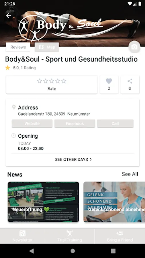With Body & Soul you can easily find the best gyms in your area or studios with special offers. Super handy: You can contact directly from the app, make a callback or arrange a trial.