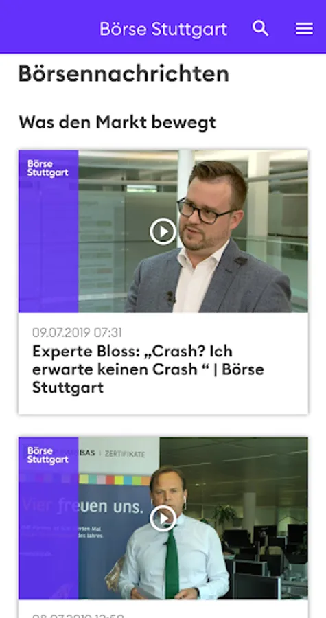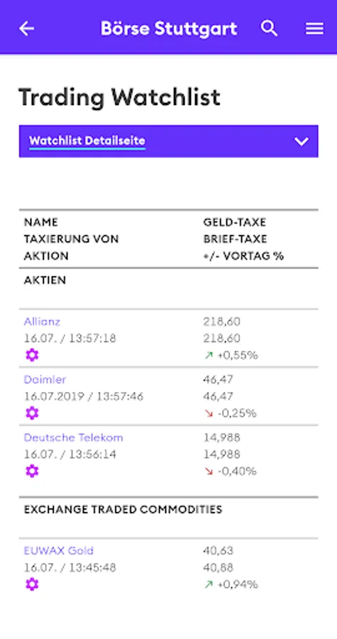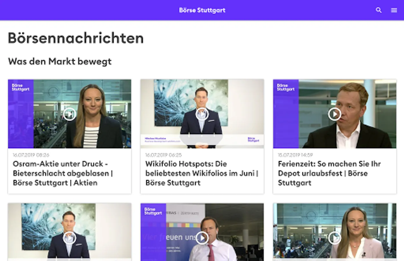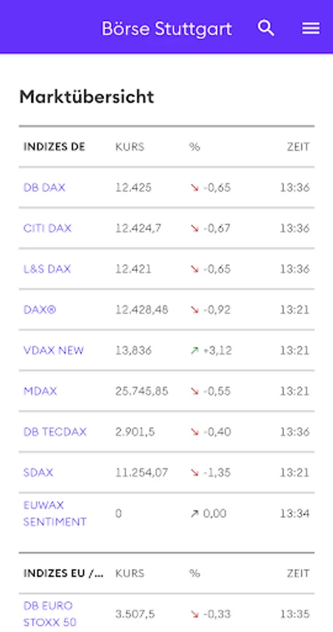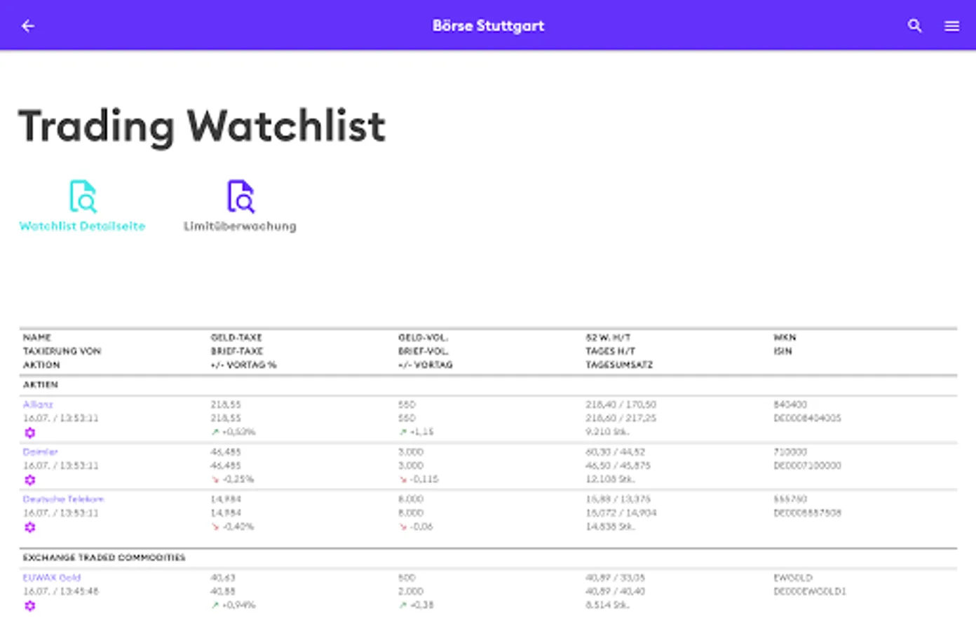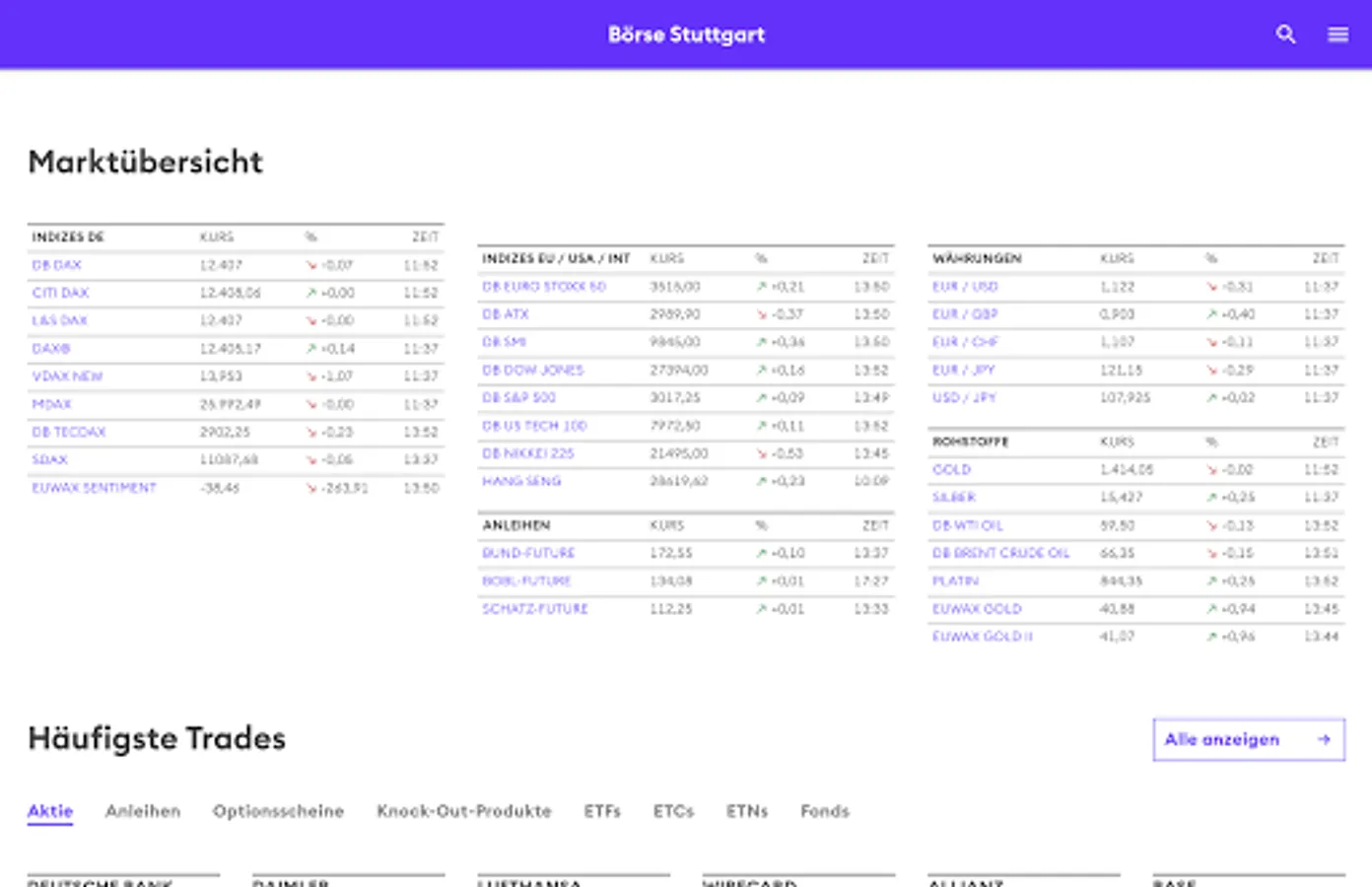 With the App Stuttgart Stock Exchange for your Android smartphone and tablet, you stay on the road always up to date. See at a glance what's happening in the market, how the values on your watchlist have changed, and where the Euwax Sentiment is.