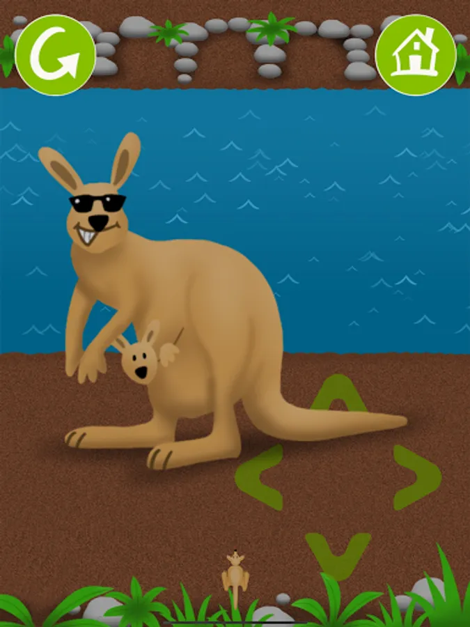 Help the kangaroo find his way home via the busy road, over wild waters and tree trunks lying on the water.