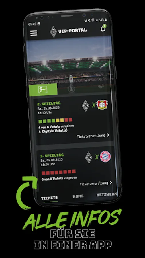 - Game day mode with all relevant information about your VIP area in BORUSSIA-PARK