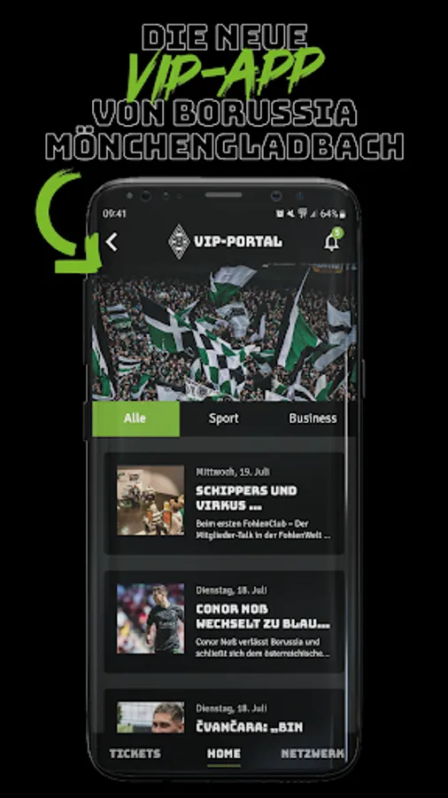 Our VIP guests are accompanied by the app throughout their match day visit. The application allows users to preview the menu, read the FohlenEcho and participate in the VIP prediction game. In addition, an exclusive business network area will be created for our partners, allowing you to network with each other. Here you will not only receive the latest business and sports news, but also the opportunity to exchange information within the partner network.