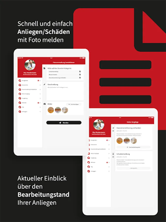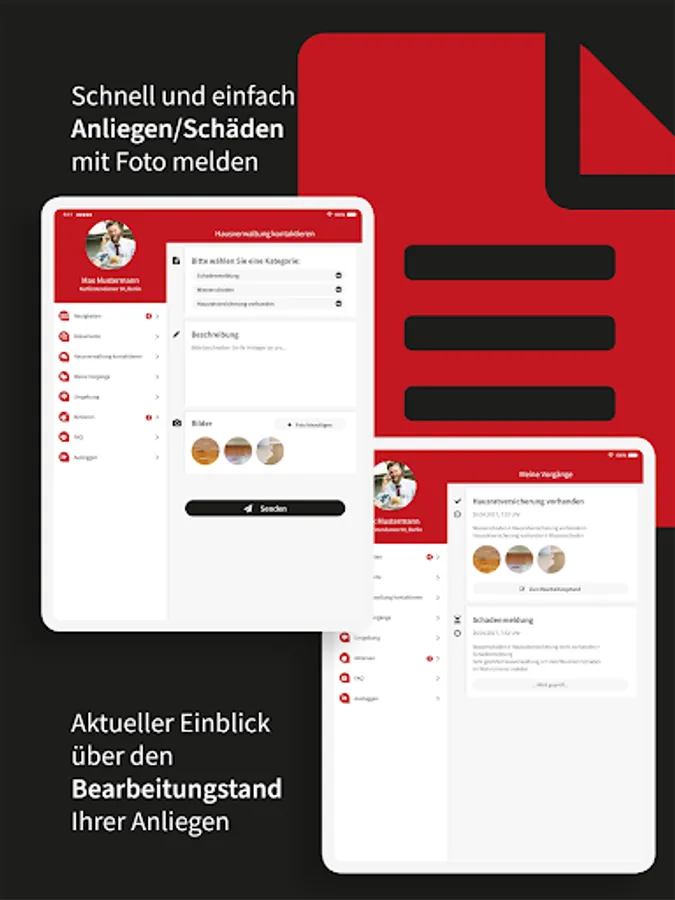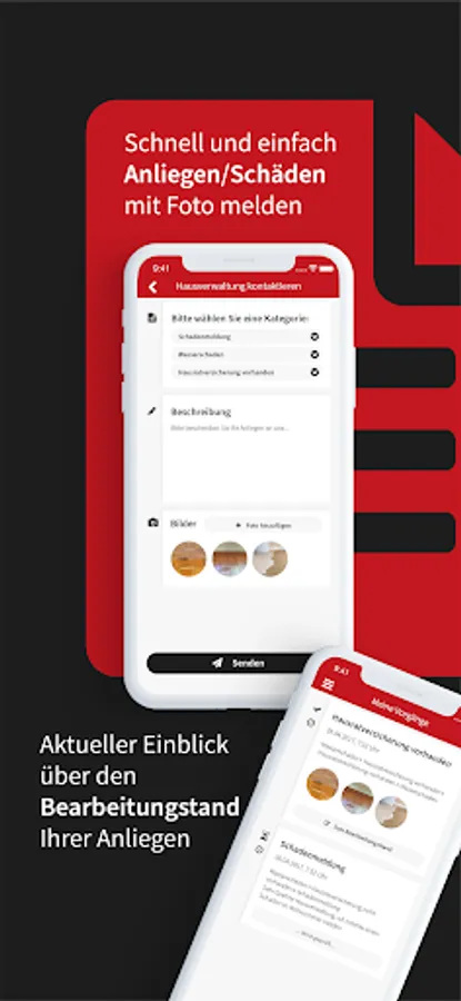 As a tenant or owner, you can report damage or concerns directly with photos via our app. Your inquiries are then available to our employees and can also be forwarded to craft businesses.