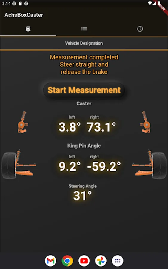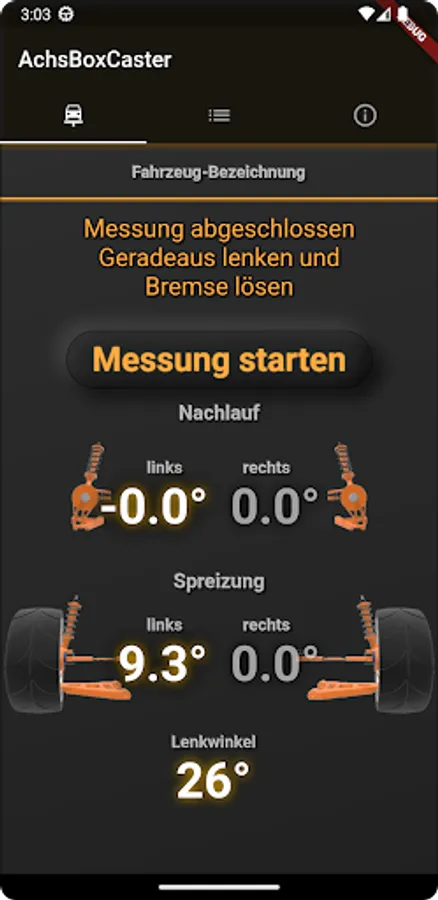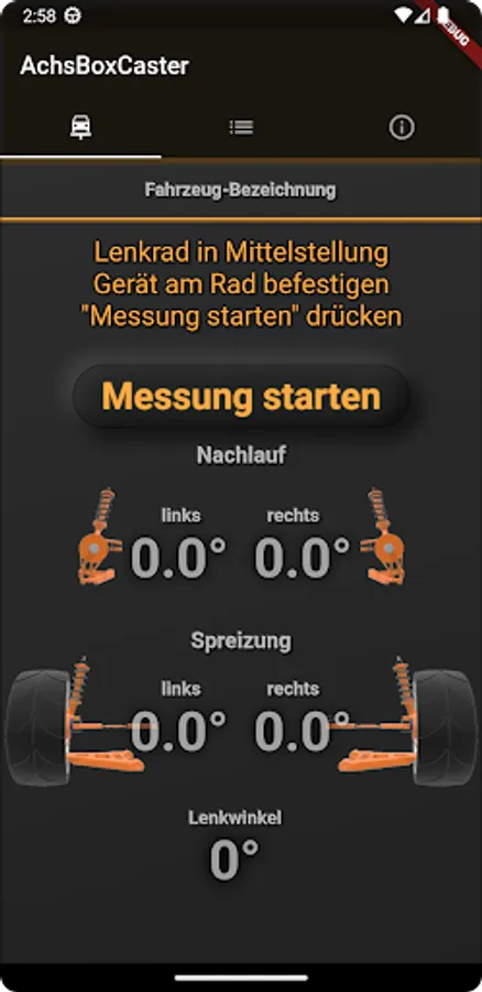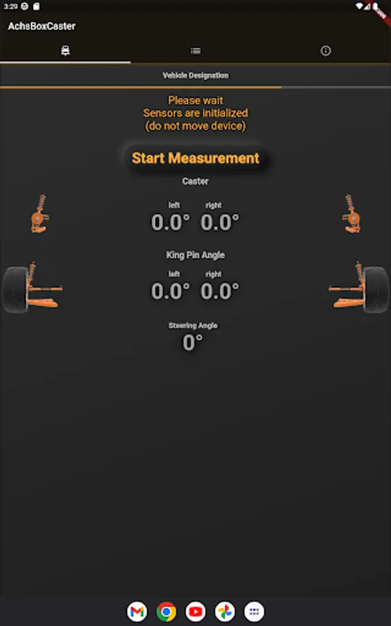 AchsBoxCaster uses the smartphone's gyroscope and acceleration sensors to calculate caster and SAI.