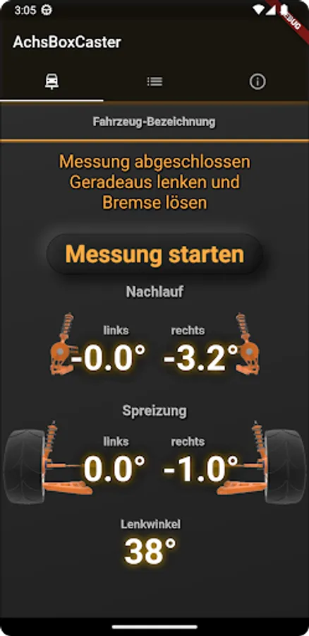 AchsBoxCaster uses the smartphone's gyroscope and acceleration sensors to calculate caster and SAI.