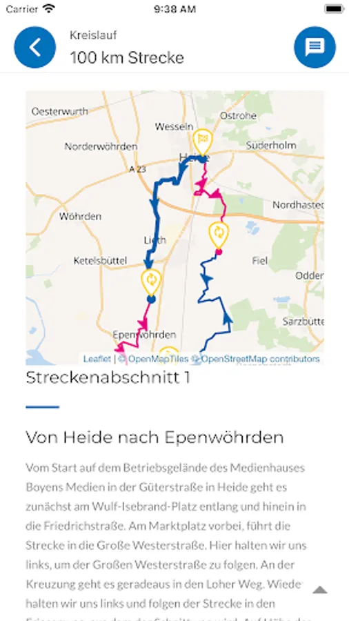Whether downtown, wide open spaces or dykes - all aspects of Dithmarschen come into play. The baton can be handed over to another team member at a total of 18 exchange points. This is how you reach the goal together as a team.