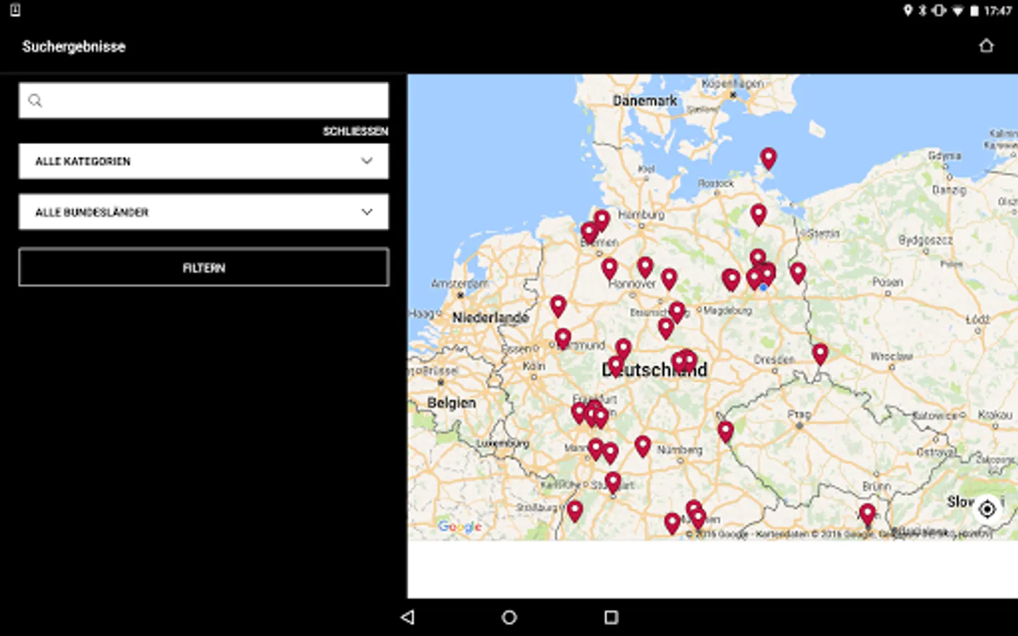You can search the database by full text, by category or Länder or let the memory cities in your area.
