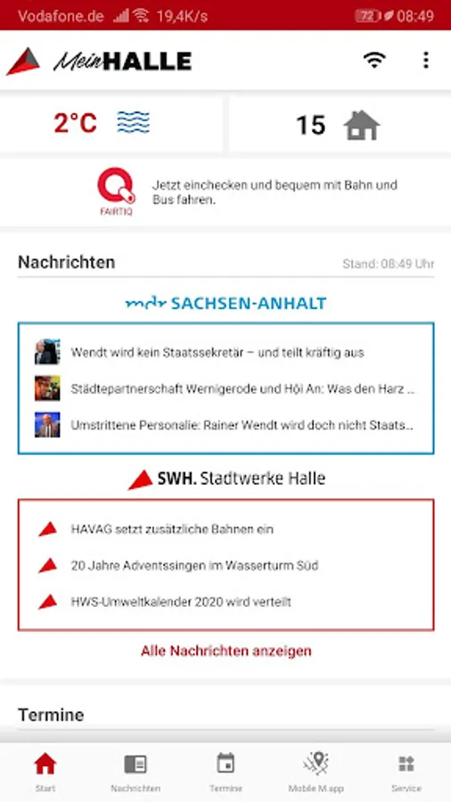 With just one swipe always with the right ticket on the road - the best and fairest price. The new ticketing app for your smartphone is here. For all means of transport of the Central German Transport Association (MDV) in our city (tariff zone 210). In "My HALL" we have set the direct link to "FAIRTIQ" on the start page.