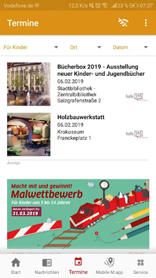 Use the free Wi-Fi at numerous hotspots in the city. Further content of the app: interactive city map "Mobile M.app", link to the ticketing app "FAIRTIQ", local news and events, housing offers, personal disposal calendar and the weather in Halle.