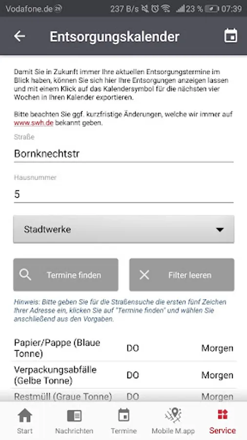"My HALL" makes your everyday life easier. The disposal calendar shows you when the yellow, blue, gray and brown bin will be emptied. Create your personal disposal calendar for the next four weeks and transfer these appointments directly into your smartphone calendar !.