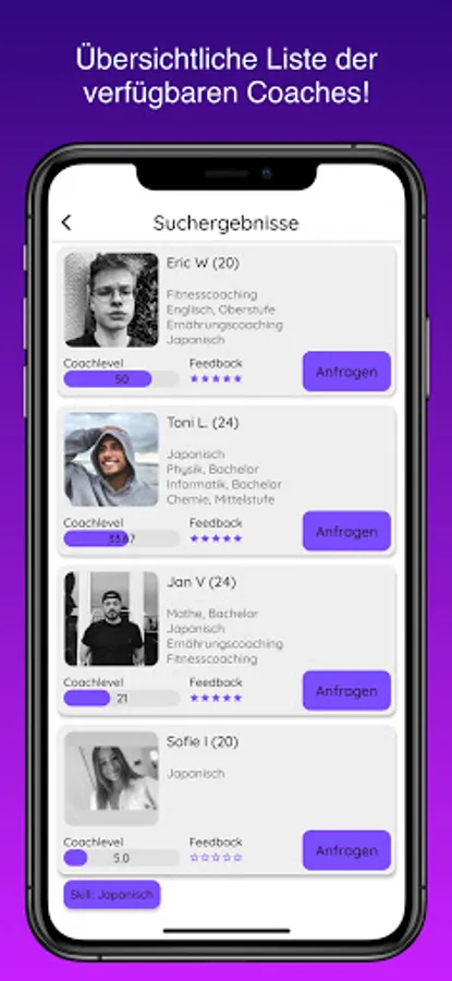As a student, you have the opportunity to find your perfect coach from a huge range of coaches who will support you with your school / academic problems in video call sessions.