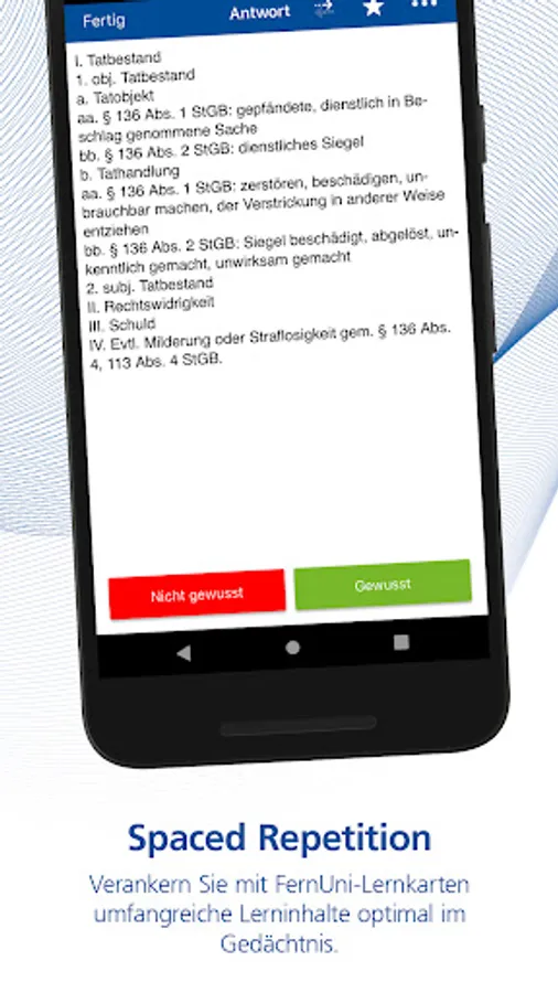 Simply register with your FernUni data and get started. The FernUni learning card app is currently in the test phase and is therefore only offered for selected courses or modules.