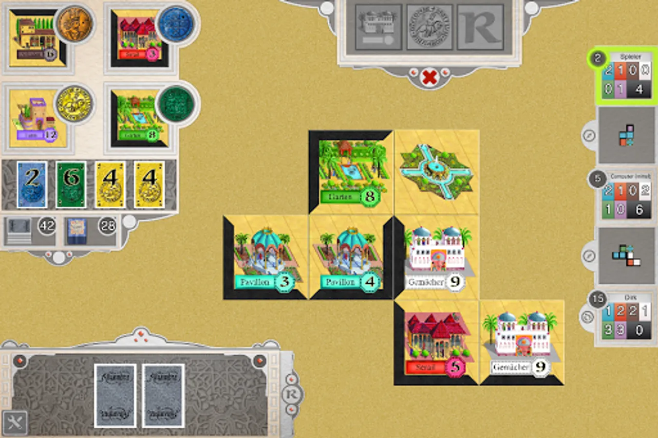 Granada at the beginning of the 13th century - work has started on building the Alhambra The best master builders in the whole of Europe and Arabia want to demonstrate their skills Employ the most suitable teams of Builders and make sure that you always have enough of the right currency. Because no matter whether they are stonemasons from the north or horticulturists from the south - they all want a proper wage and insist on their "native" currency.