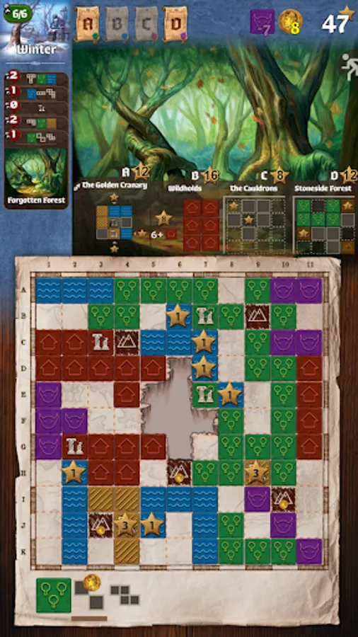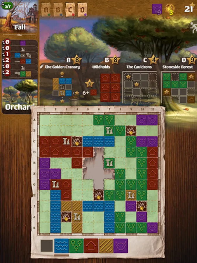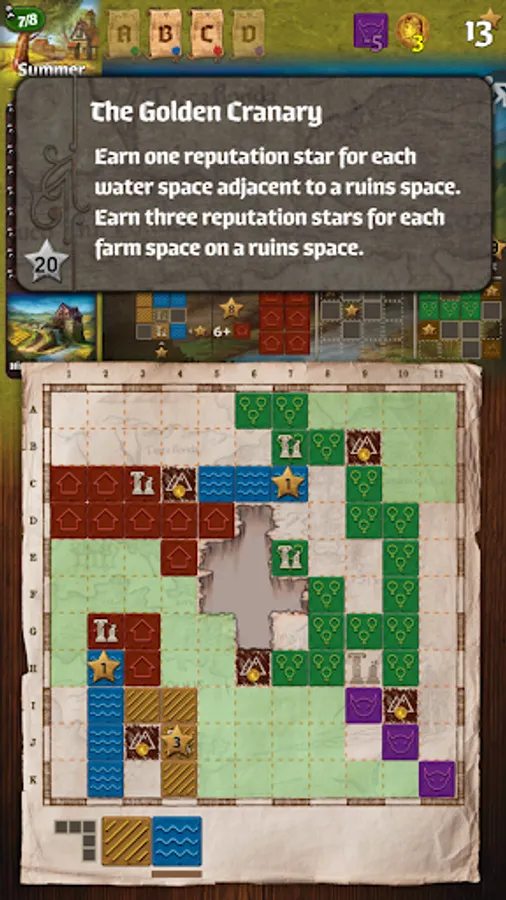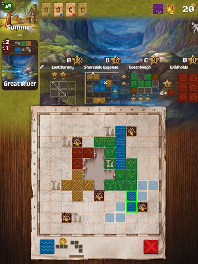Queen Gimnax has ordered the reclamation of the northern lands. As a cartographer in her service, you are sent to map this territory, claiming it for the Kingdom of Nalos. Through official edicts, the queen announces which lands she prizes most, and you will increase your reputation by meeting her demands. But you are not alone in this wilderness. The Dragul contest your claims with their outposts, so you must draw your lines carefully to reduce their influence. Reclaim the greatest share of the queen’s desired lands and you will be declared the greatest cartographer in the kingdom.