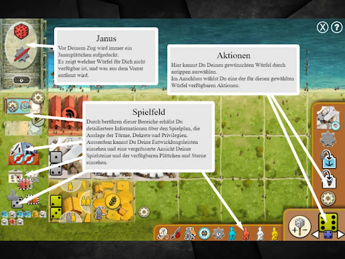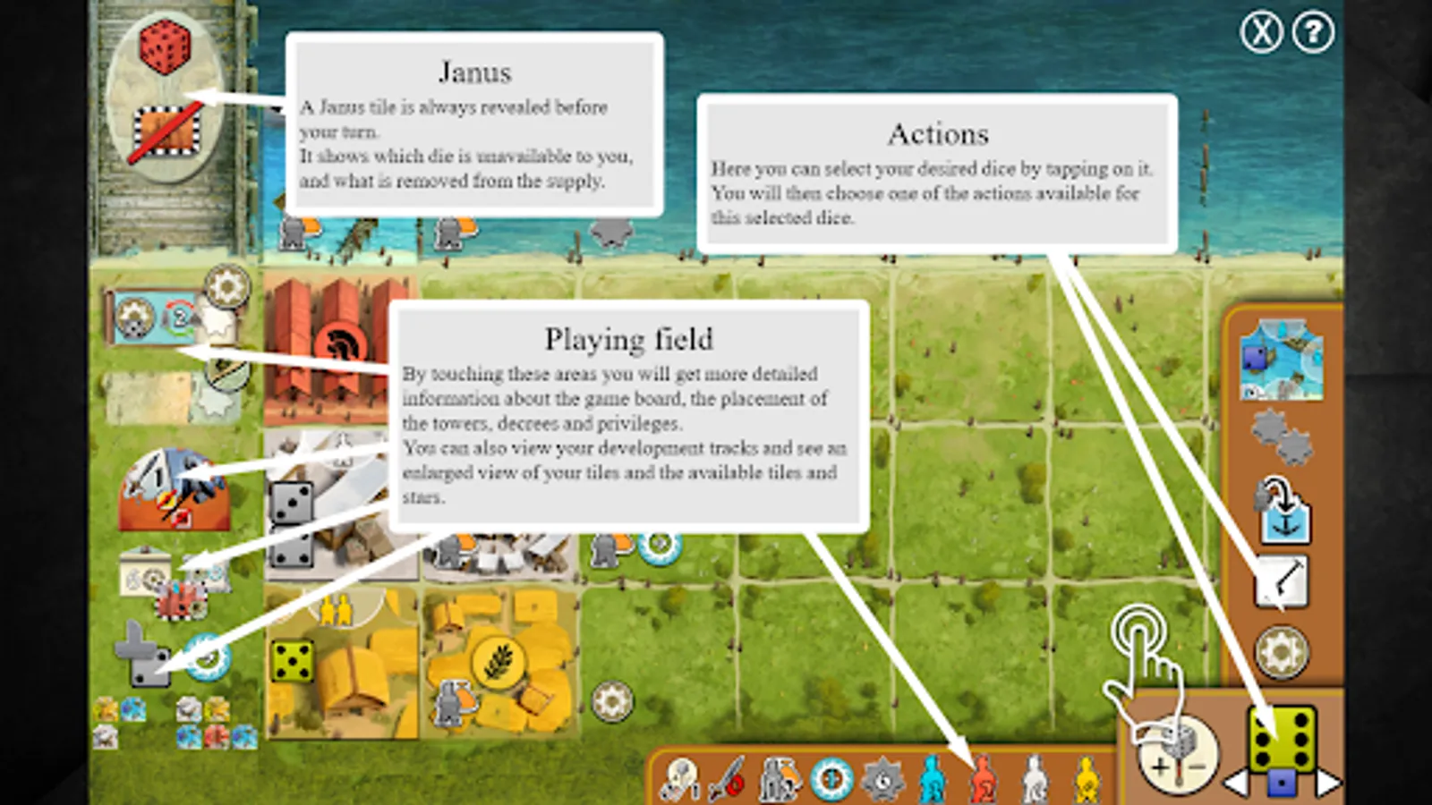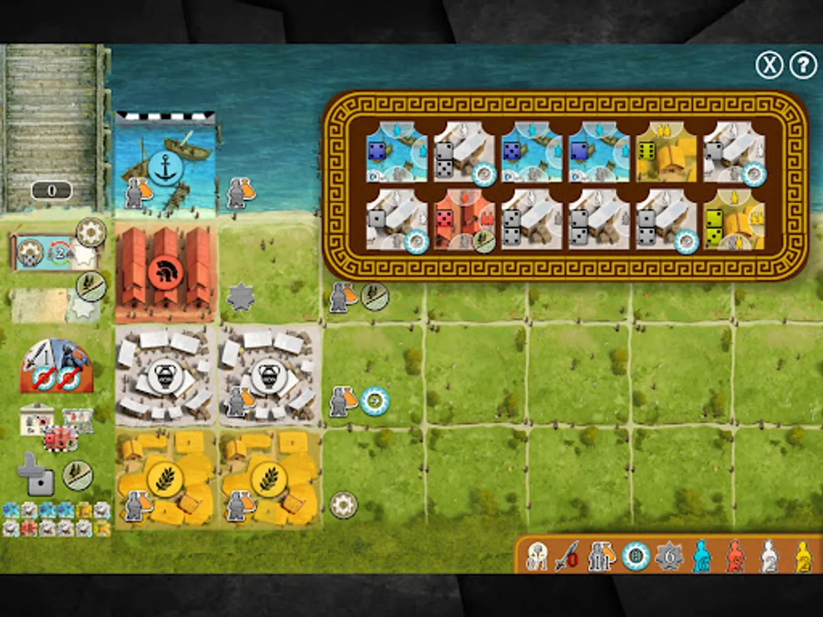 In 'Discordia', you develop your city by building farms, barracks, defenses, harbors, and markets, and by trading with ships. Use your seamen, soldiers, merchants, and farmers profitably, fulfill decrees, and secure privileges — acting carefully at all times so that your city grows neither too fast nor too slow. Will you have the best-developed city at the end of the fourth year, or will you manage to impress the empress before then and win the game early?
