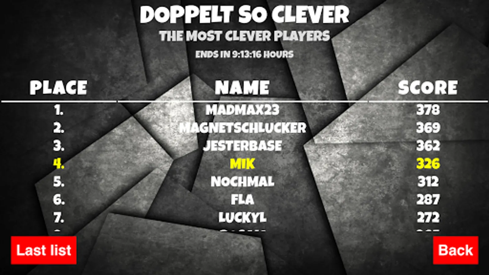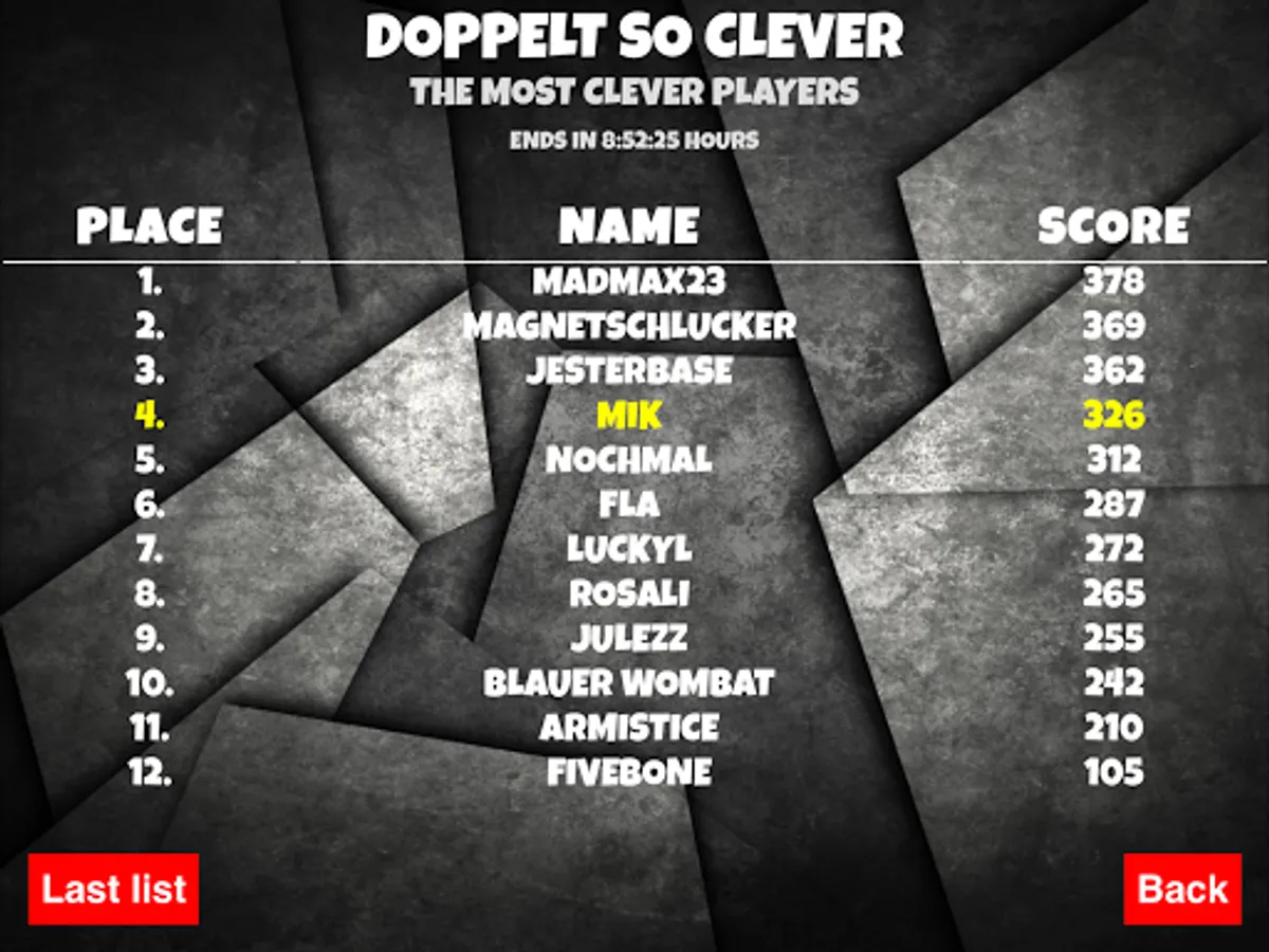 Whether you're a highscore hunter with hundreds of played games or just have played a few occasional games, "Twice as clever" offers you new and exciting challenges to master.