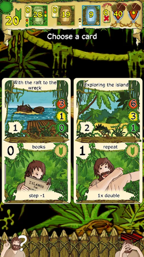 In this game, Robinson is represented as a card stack of different behaviors. You are forced to improve this card stack, so you can collect the cards at the end of the game to give Robinson the best chance to win against the tough pirates!