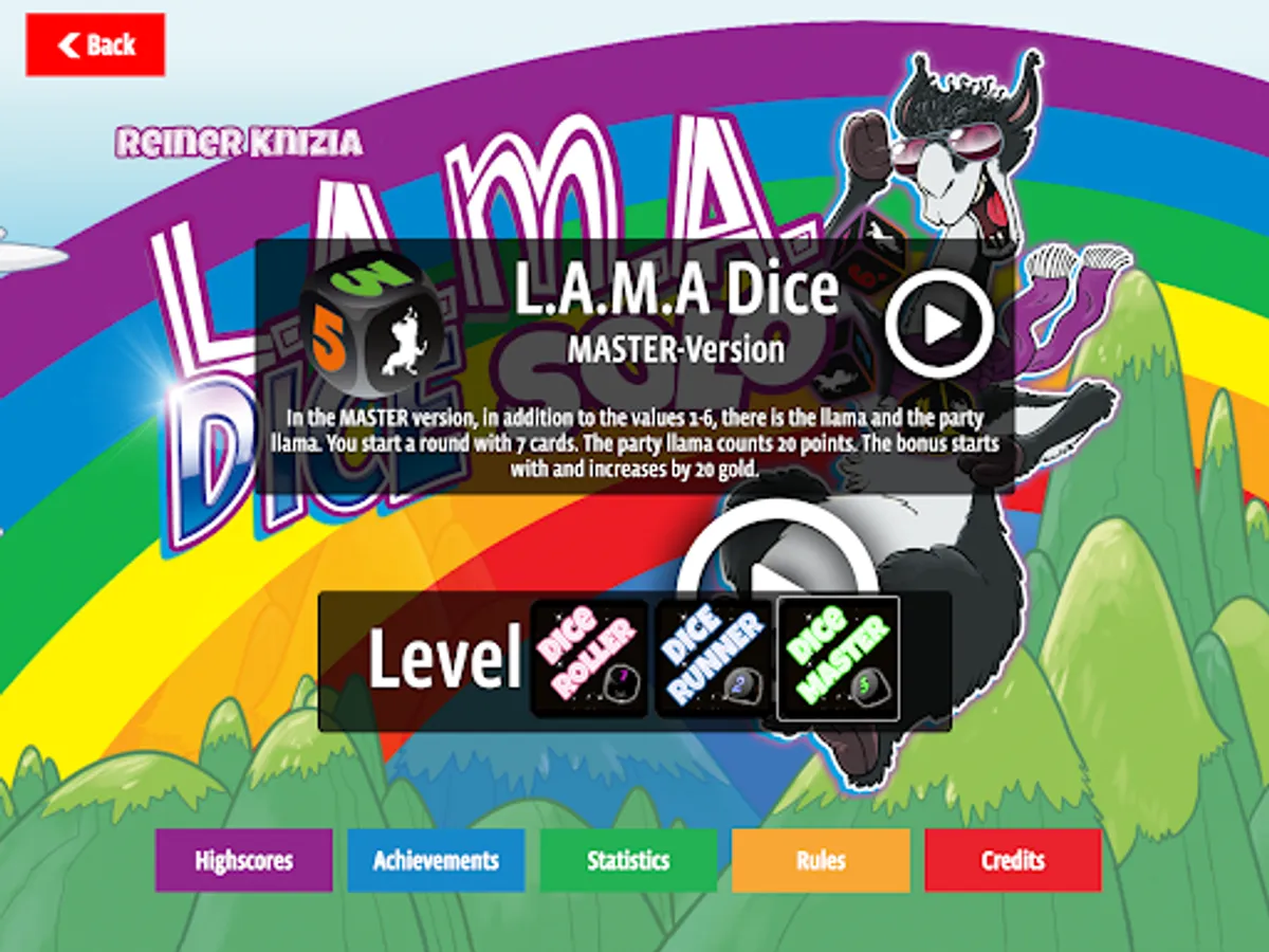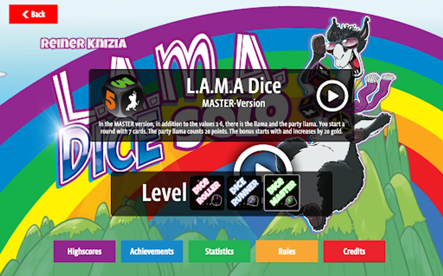 As a special bonus, the completely new solo mode for "LAMA Dice" is included as a world premiere. Set yourself the special challenge of achieving the best possible result. To achieve the highest possible scores, however, you must first unlock the 3rd level by achieving good results in the previous levels. If you succeed in this, the way to the top of the global high score list is open to you!