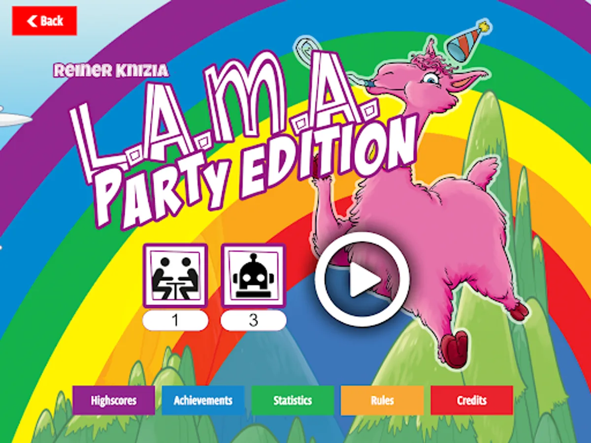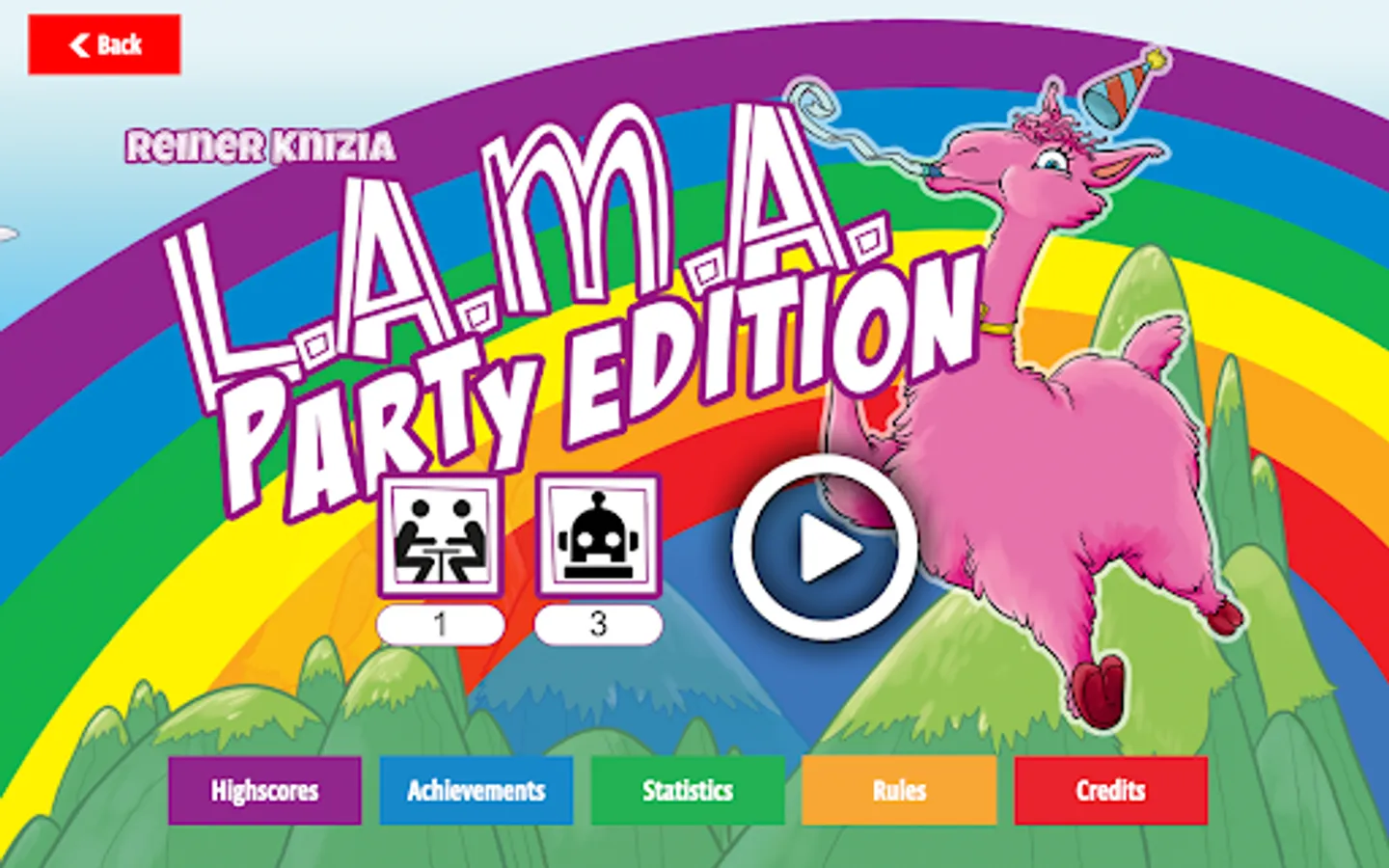 But the app contains even more: The two spin-offs "LAMA Party Edition" and "LAMA Dice" are also included.These follow the same simple basic principles as the basic game, but offer new game elements and thus even more variety. Play all 3 modes with up to 5 AI opponents or with friends and family via Pass & Play. Of course, you can also mix both in one game.