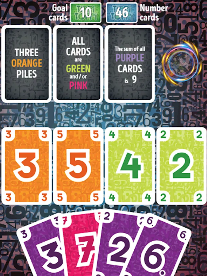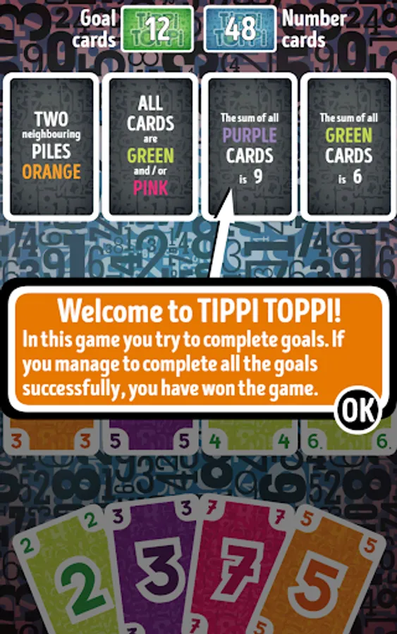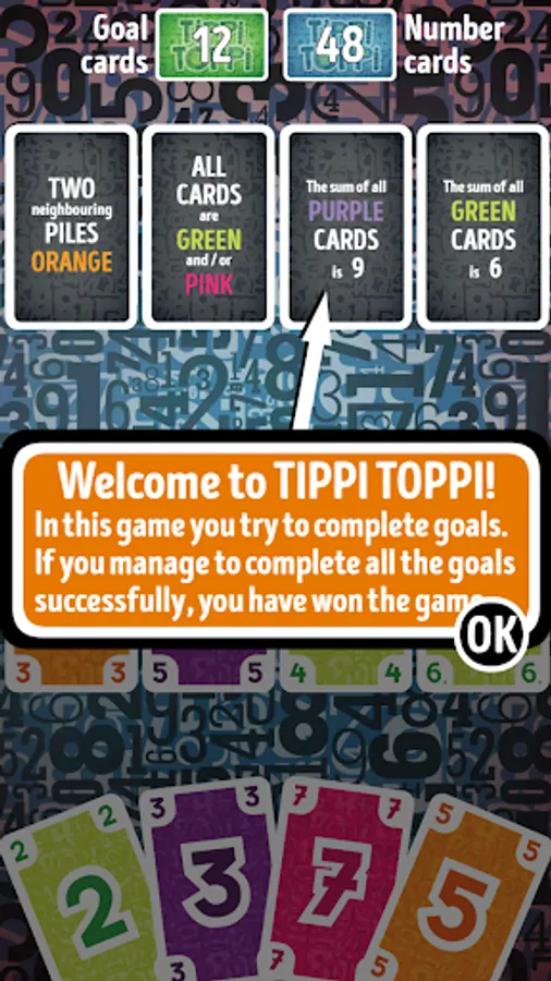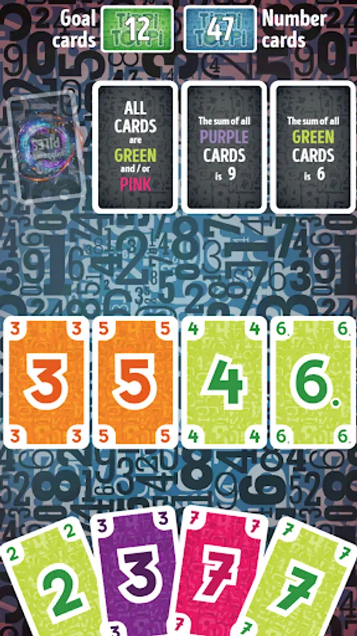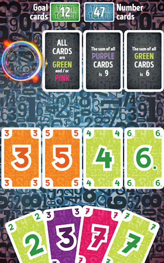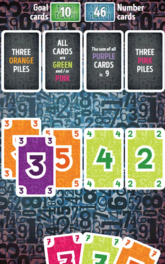 With cards in four colors and with values from 1-7, you have to complete 12, 14 or even 18 targets.