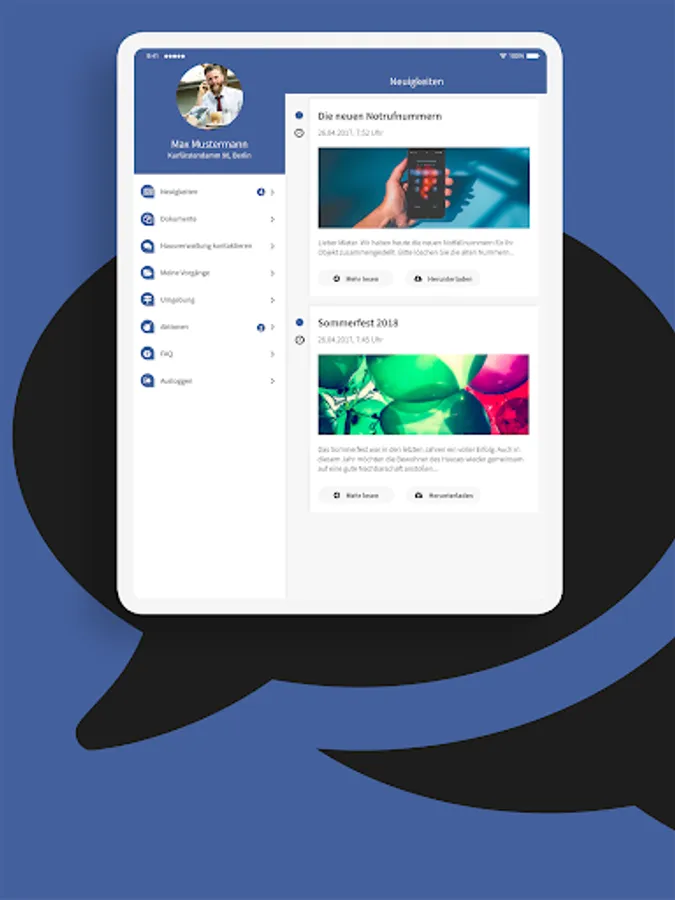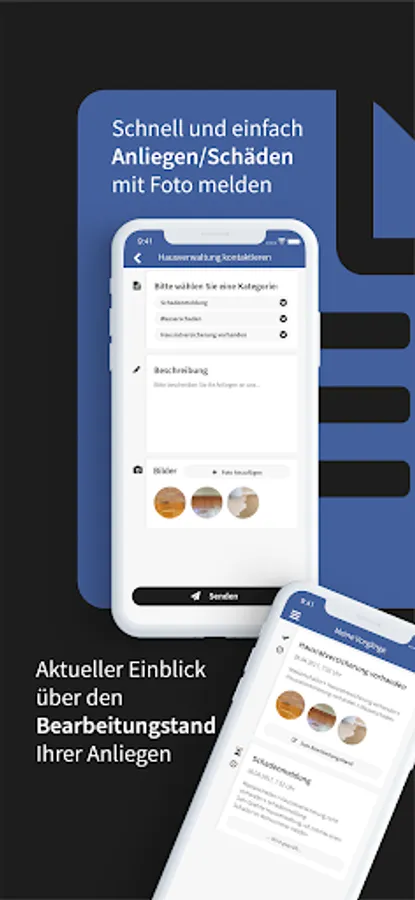 As a tenant or owner, you can report damage or concerns directly with photos via our app. Your inquiries are then available to our employees and can also be forwarded to craft businesses.