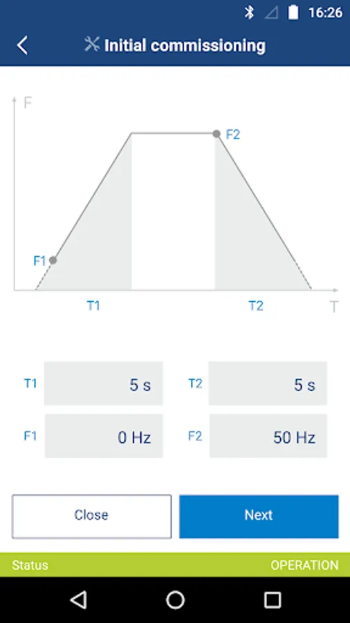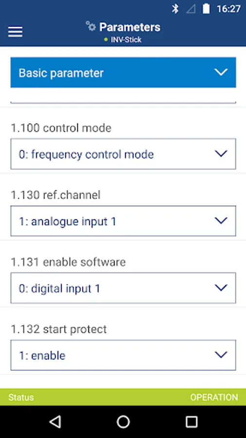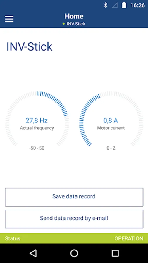 The data records are fully compatible with the familiar INVERTERpc PC software allowing data records to be produced with ease on the PC and loaded onto drive controllers using the app. Vice versa, the app can be used to read data records in the field, send them by e-mail and analyse them on the PC.