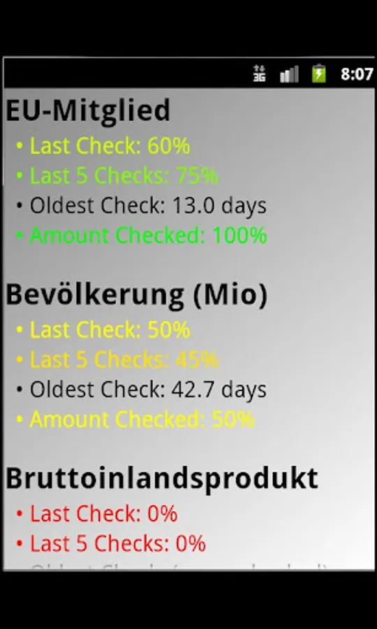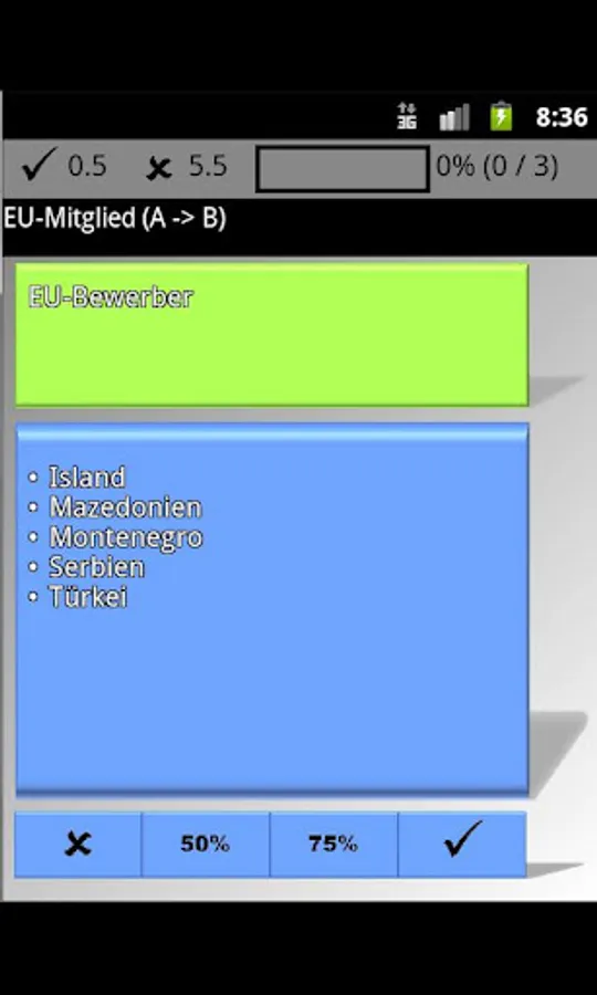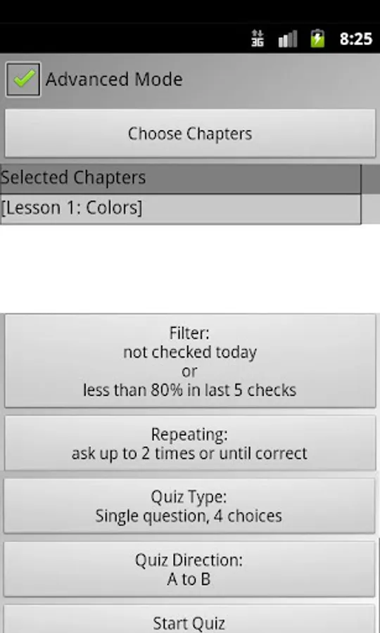 Bright Quiz remembers what you already know and can only asks you the items you have't learned yet. Here are some examples: