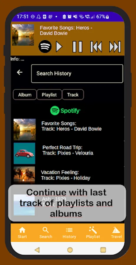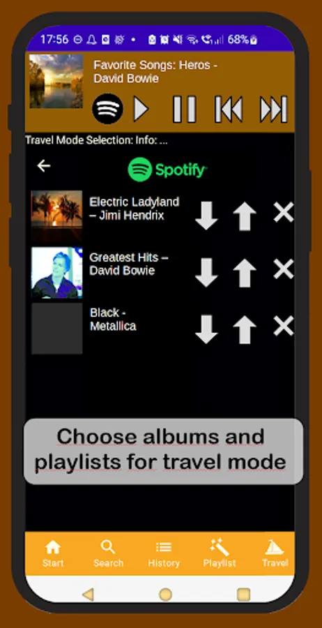 - albums and playlists can be selected for travel mode. Also the playback history is available in travel mode