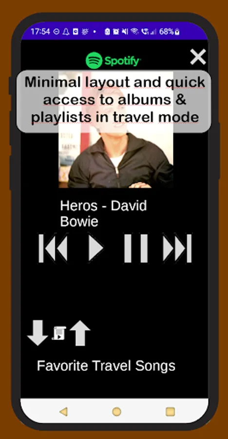 - travel mode allows you to easily change the playlists or albums you are listening with very reduced controlls