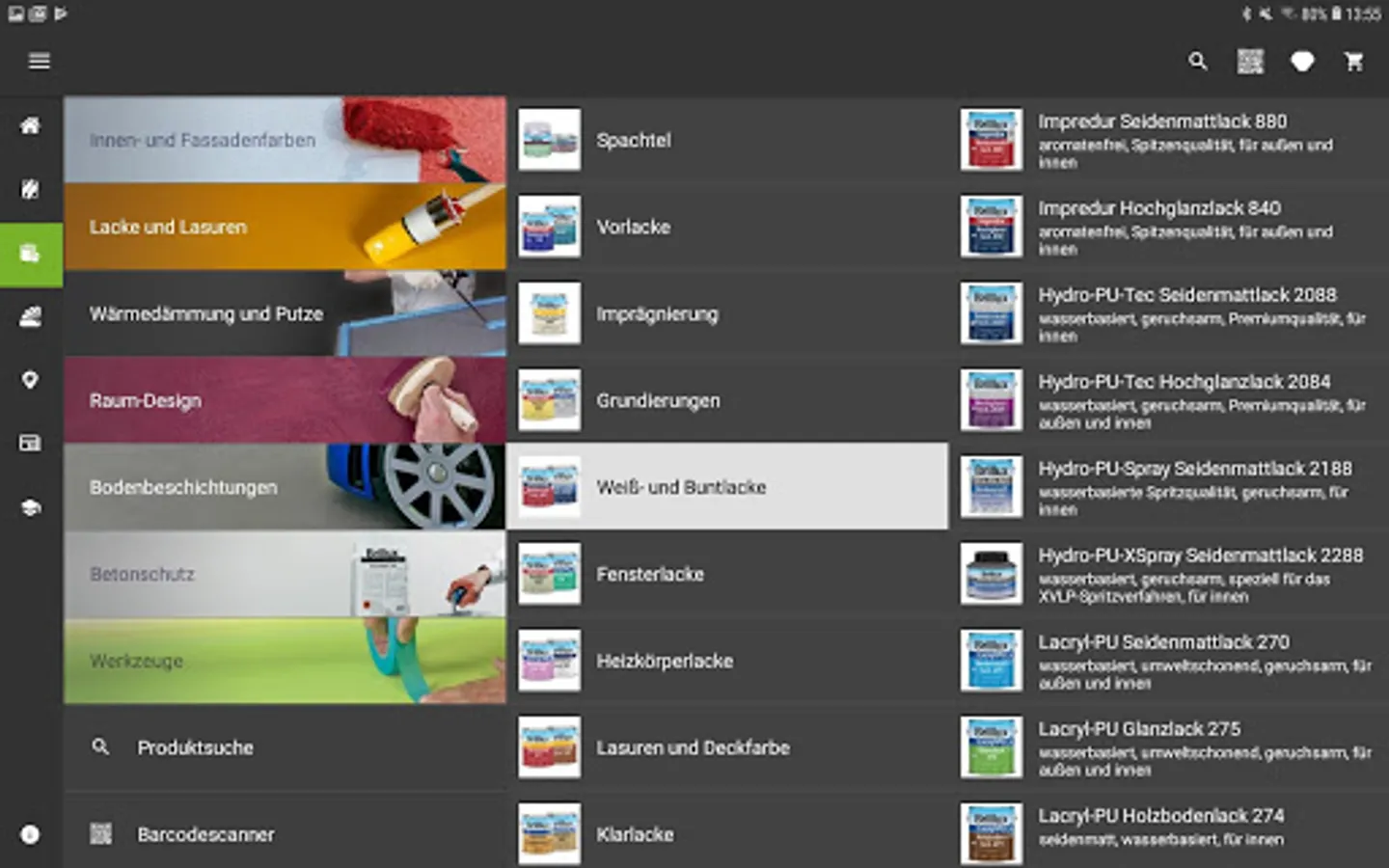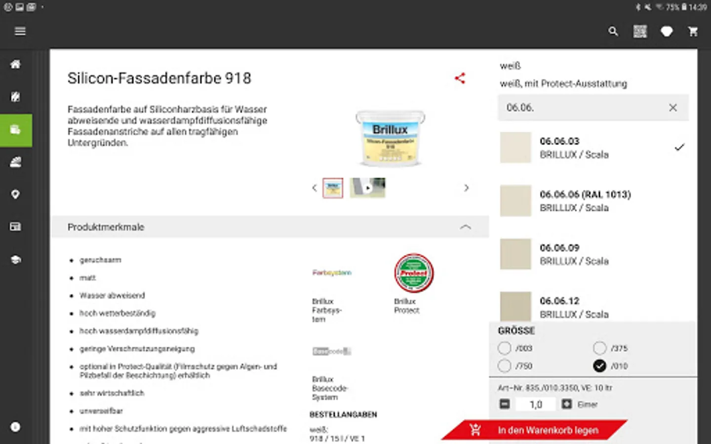 With this free app, you always have all products with data sheets, videos and brochures, all colors and surface structures, as well as the opening times and contact details for all Brillux branches at hand. The information can be found quickly using various search and scan functions, and the shopping cart enables business customers to place orders directly.