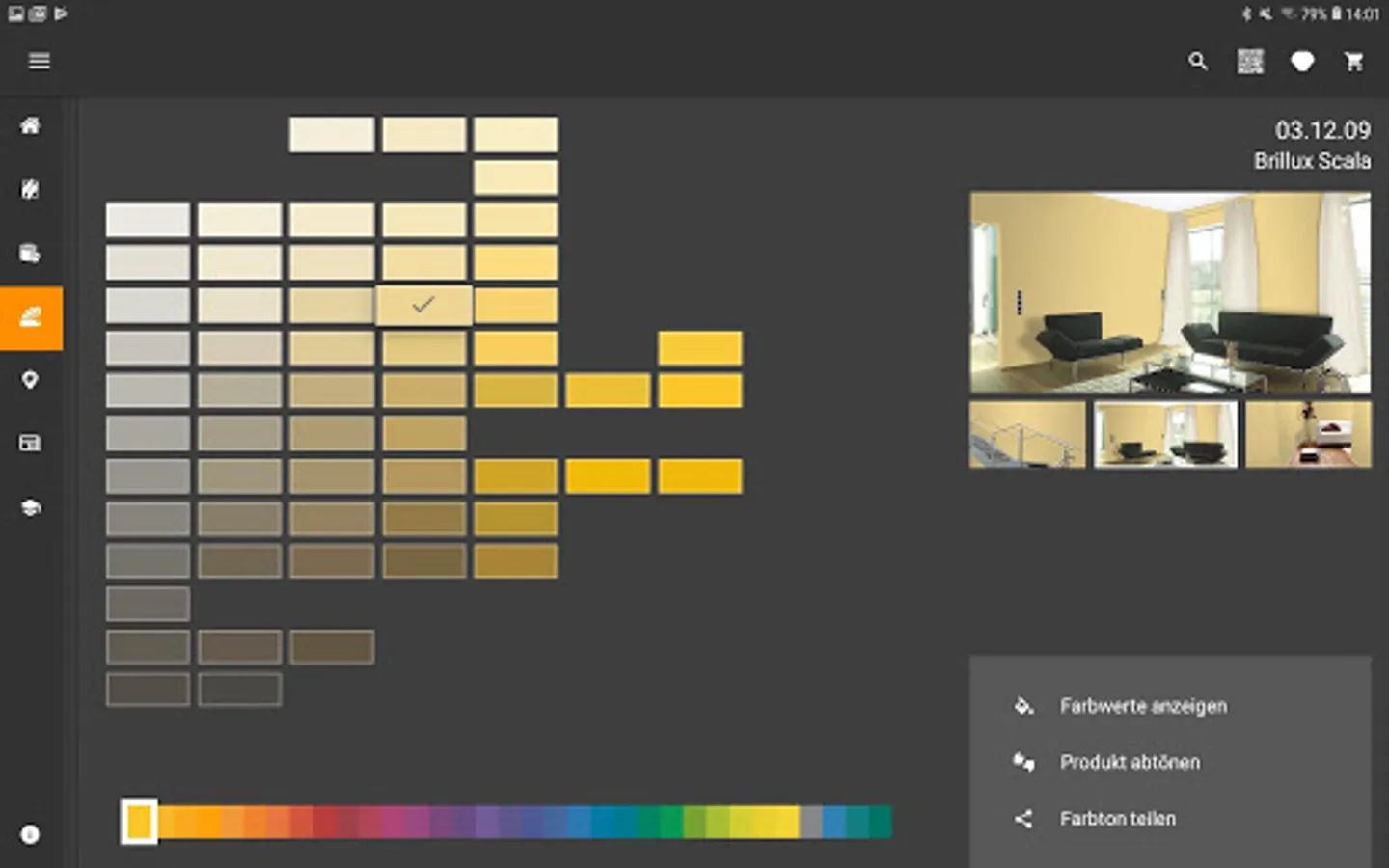 Turn your mobile device into an advisory tool for color design: a limitless variety of color tones and structured surfaces for wall and floor coverings is available from various sources. Browse through the digital color fans or the systematically structured color atlas. The Brillux style cards provide inspiration for color harmonies. The 'Tint product' function can be used to directly check which products can be mixed in this color.