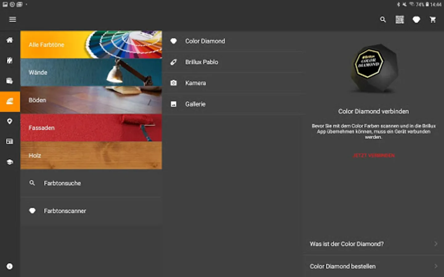 With the 'Pablo' and the new 'Colr Diamond', two different color scanners can be connected to the Brillux app via Bluetooth in order to continue working with the determined color shades.