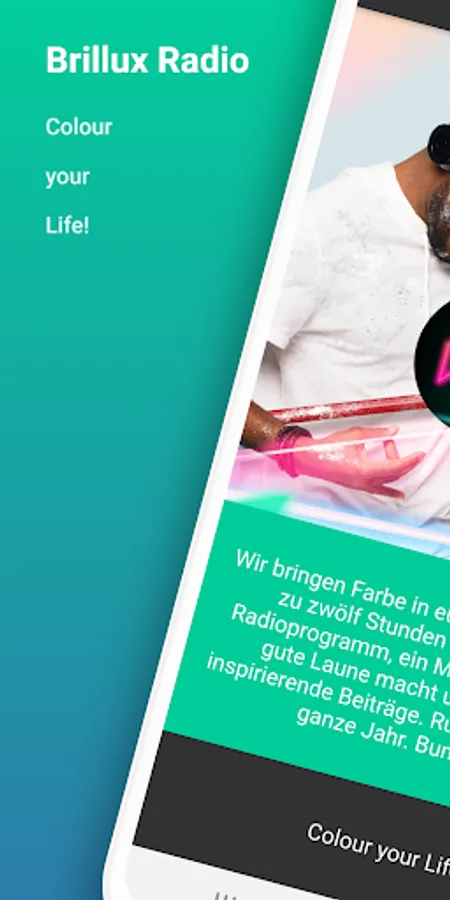 We bring color into your everyday life: up to twelve hours of live radio program daily, a music mix that puts you in a good mood and of course lots of inspiring contributions. With us you get all the information about renovating, refurbishing and redesigning. We talk about what interests you - privately or professionally. Brillux Radio delivers the right sound. Around the clock. All the year long. nationwide.