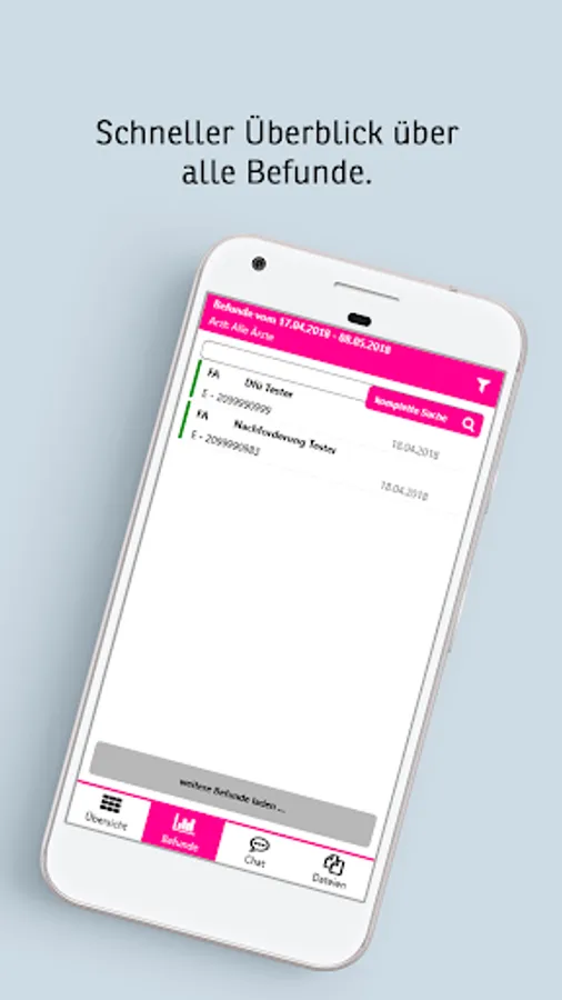 With this tool, you gain access to the laboratory findings of your patients anywhere - immediately after validation. The integrated chat module offers you another opportunity to contact us. Ask e.g. Questions about findings directly to the employees of the respective department or contact us for other concerns. We will take care of your request immediately.