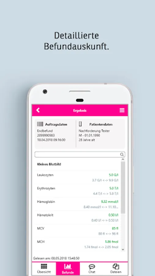 This app of the laboratory Koblenz offers you as a sender of the laboratory Koblenz, many different functions to facilitate your daily work in the practice. The main component of the app is the online diagnostic information.