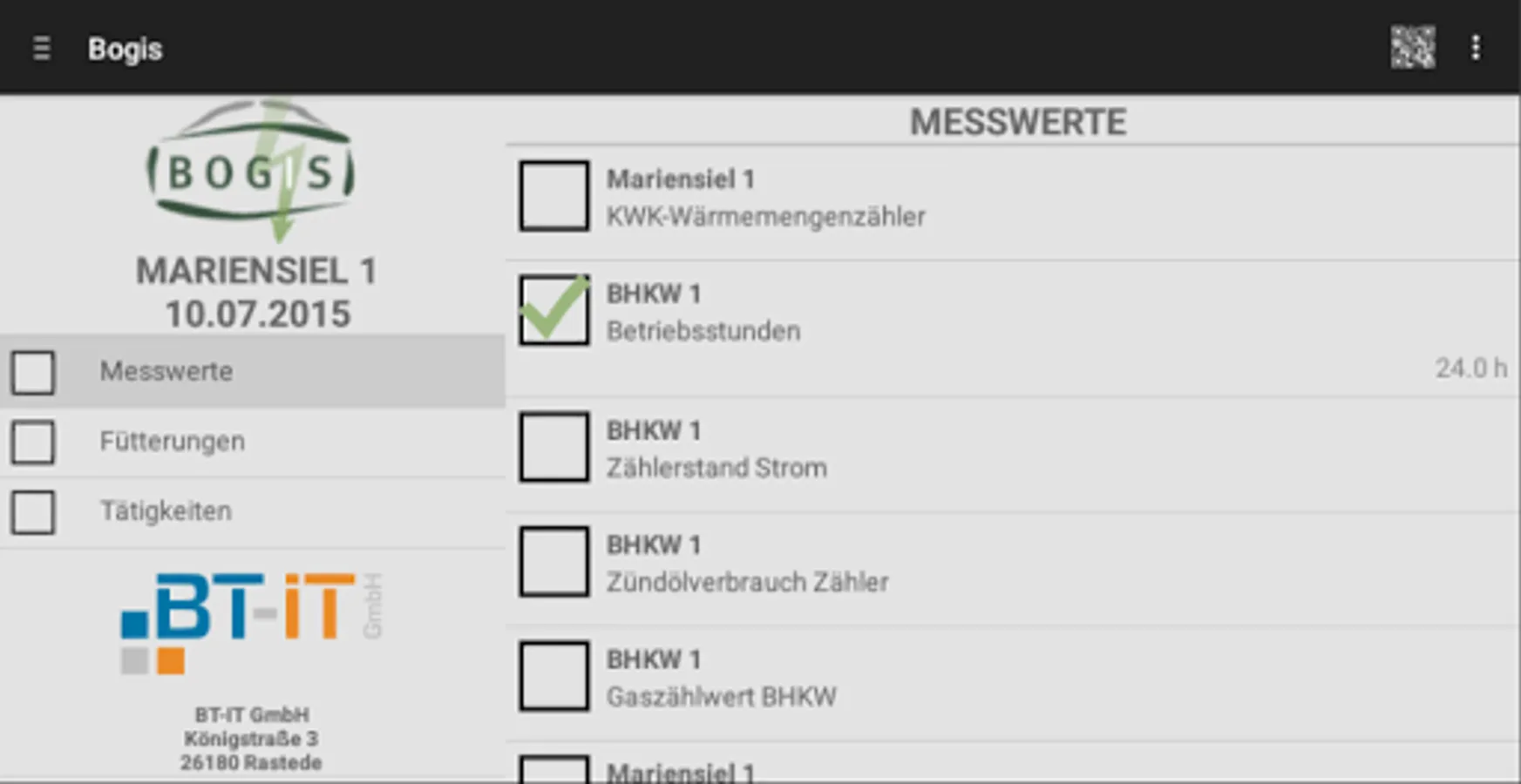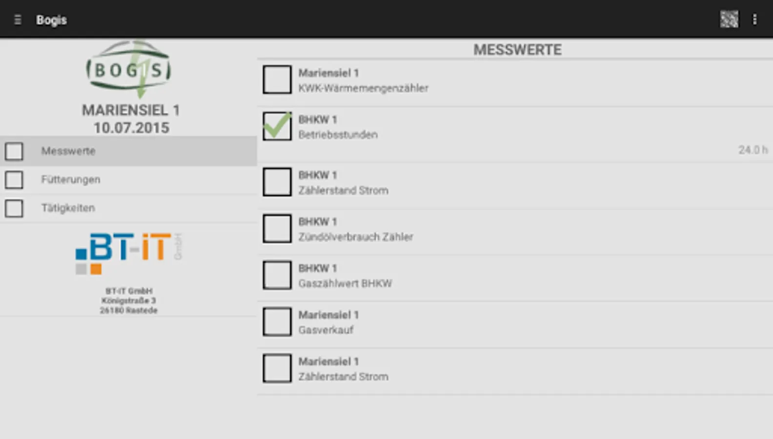 In addition can be performed on the BOGIS-APP and the complete maintenance management of the biogas plant.