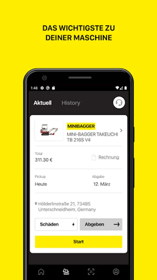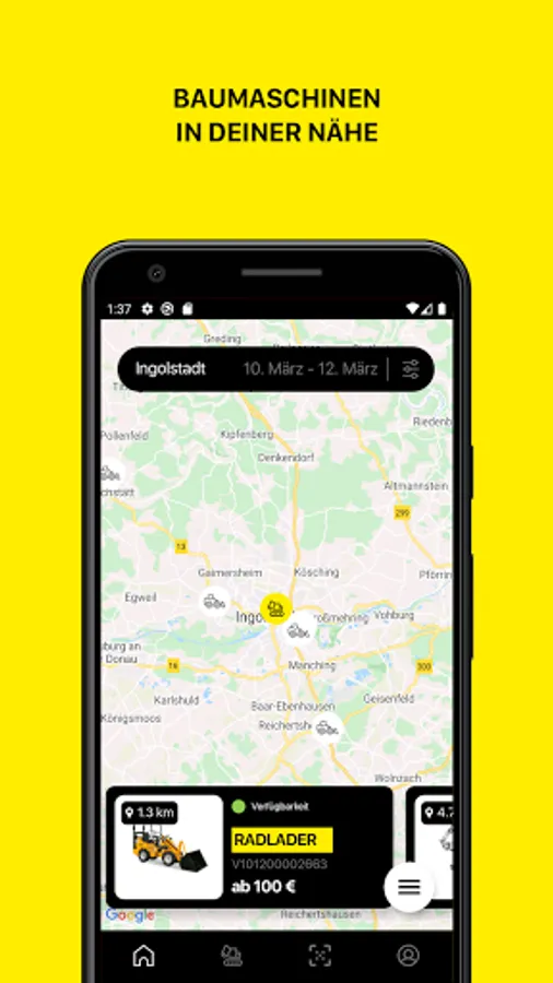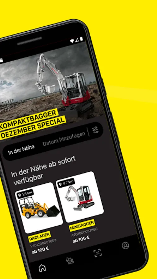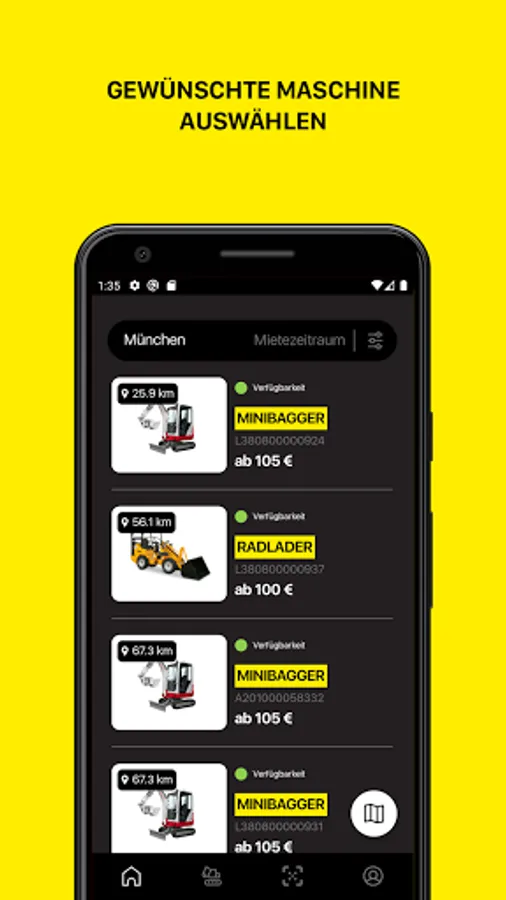 No annoying paperwork, check availability directly, select a construction machine conveniently and easily, pick it up and get started right away!
