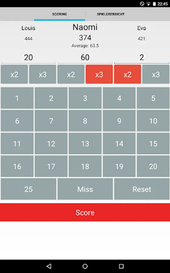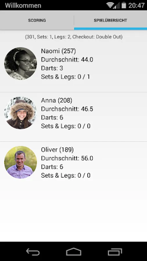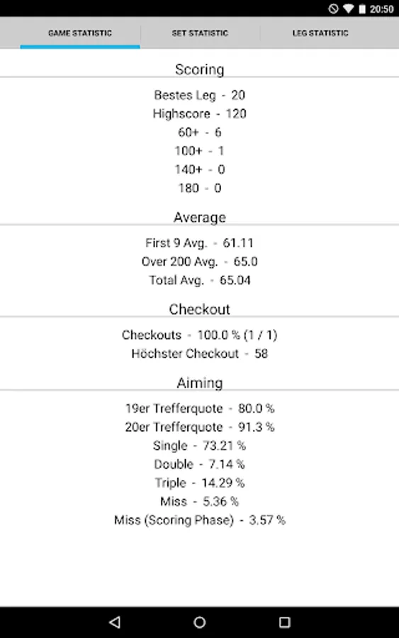 This dart scoreboard offers the possibility to capture and present dart data in single- and multiplayer modus. All player statistics can be analyzed on several detail levels like leg statistic, set statistic, game statistic or player statistic. Let's Dart Scoreboard gives every player the chance to analyze and improve his skills.