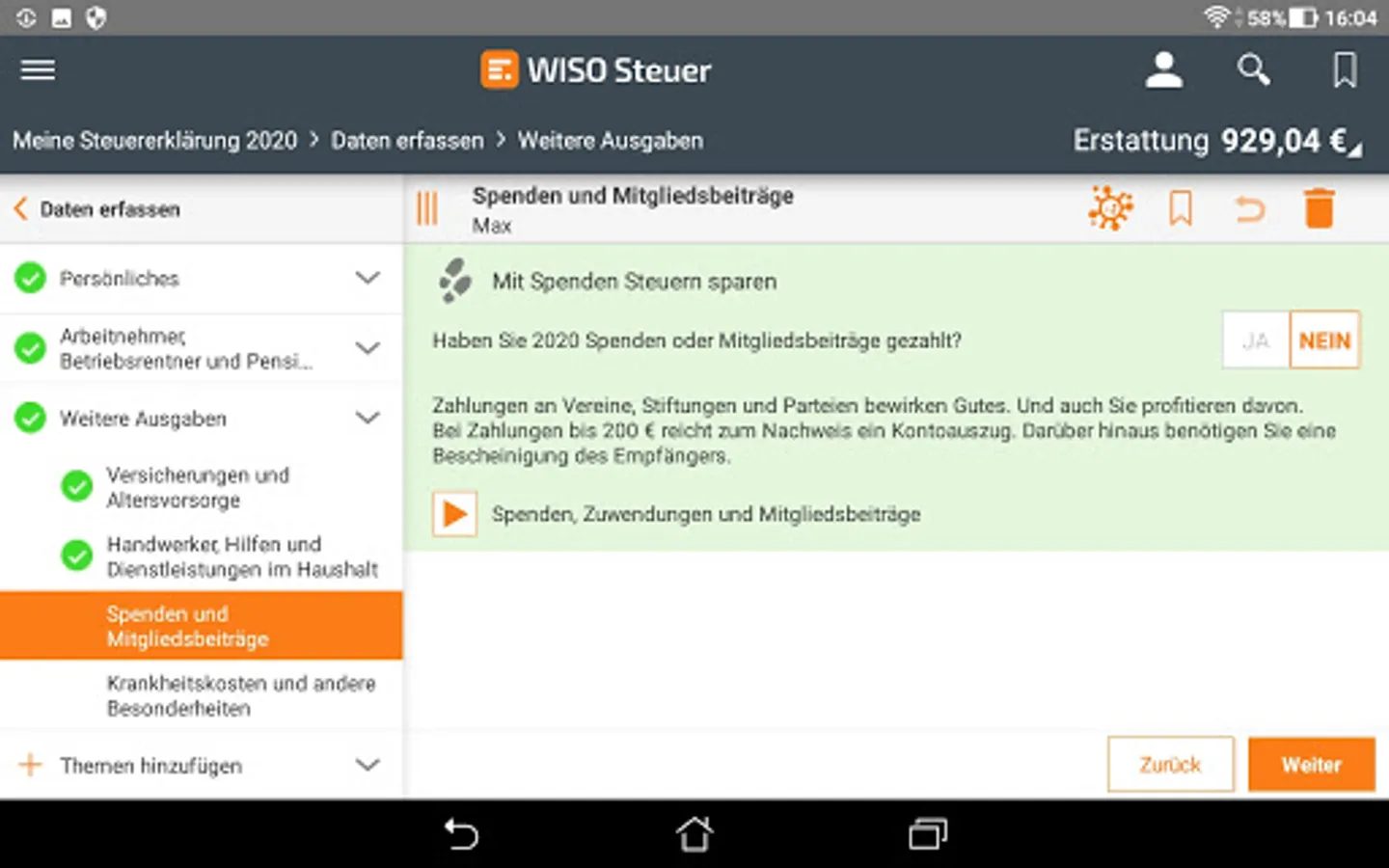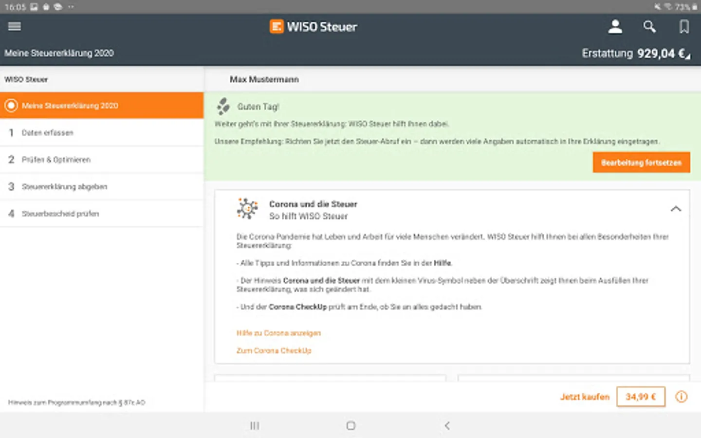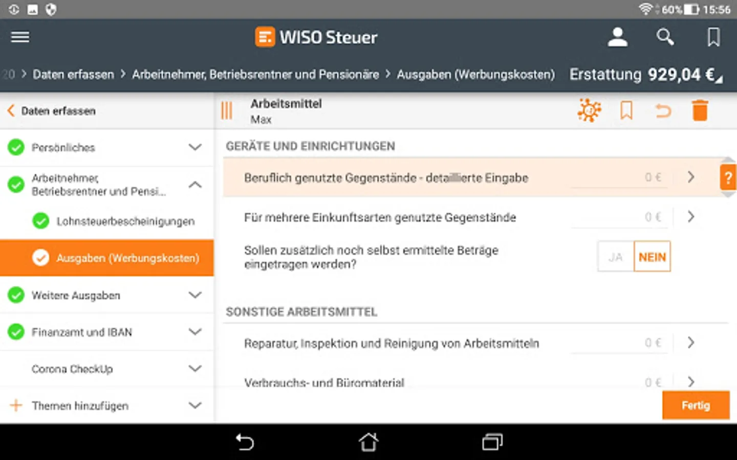 Up-to-date for the tax return 2020 - completely on your Android tablet! The popular tax return app.