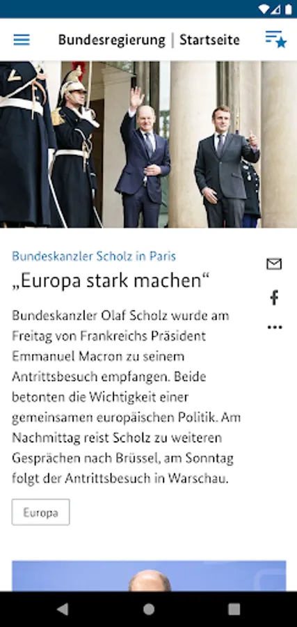 With the Federal Government's app, you always stay up to date: The app offers the latest on government policy, statements by the Chancellor, exclusive videos and photos.