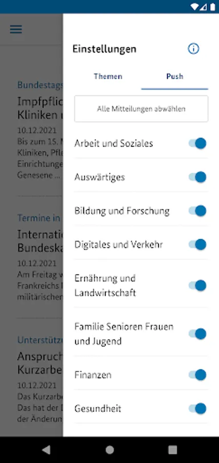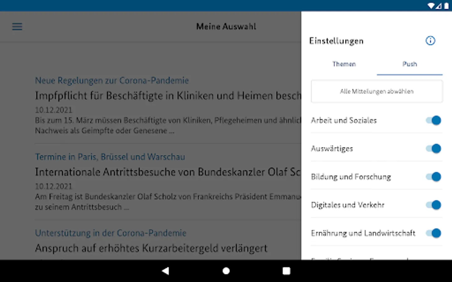 Depending on which topics you are particularly interested in, you can also personalize the app. If you don't want to miss any important messages, you can have push notifications sent to your smartphone.