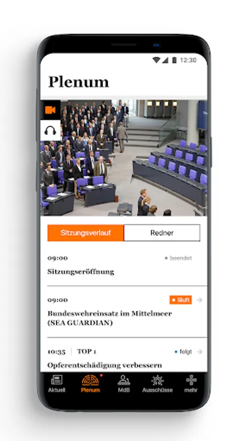 Plenary sittings and public committee meetings are broadcast live. When a plenary sitting is taking place, “Plenum/TV” takes you straight to the plenary chamber: find out what subject is currently being discussed in Parliament, who is speaking, and what topics are on the agenda for the current sitting. You can follow the debate live using the audio and video streams. Your smartphone or tablet will immediately show when the next speaker takes the floor or the debate moves on to the next item on the agenda.