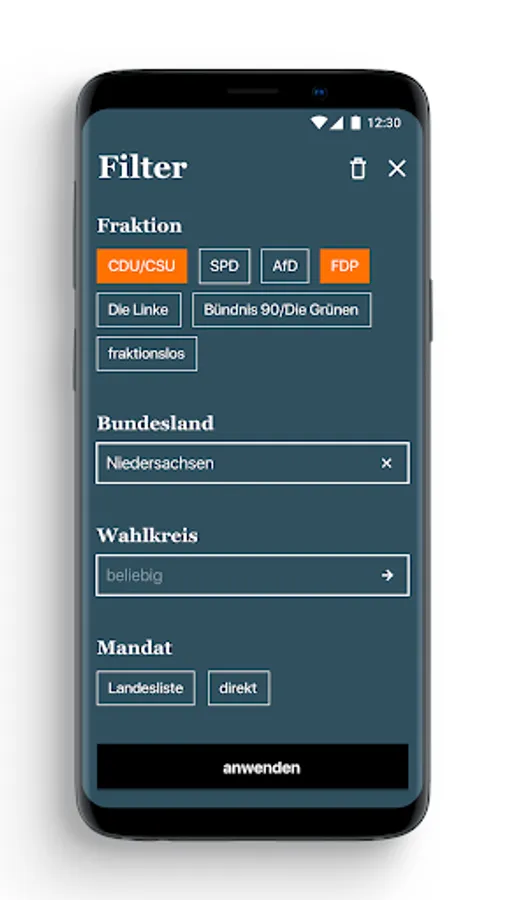 The app launches with articles and background information about the most important debates taking place at the Bundestag.